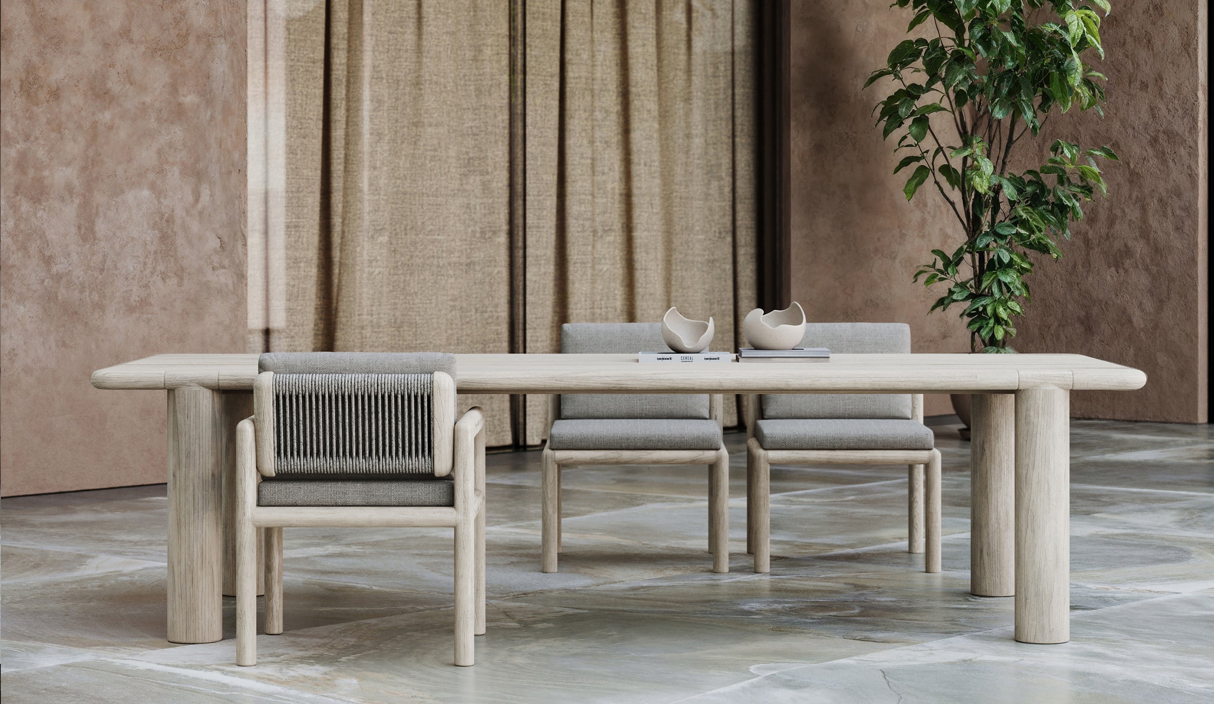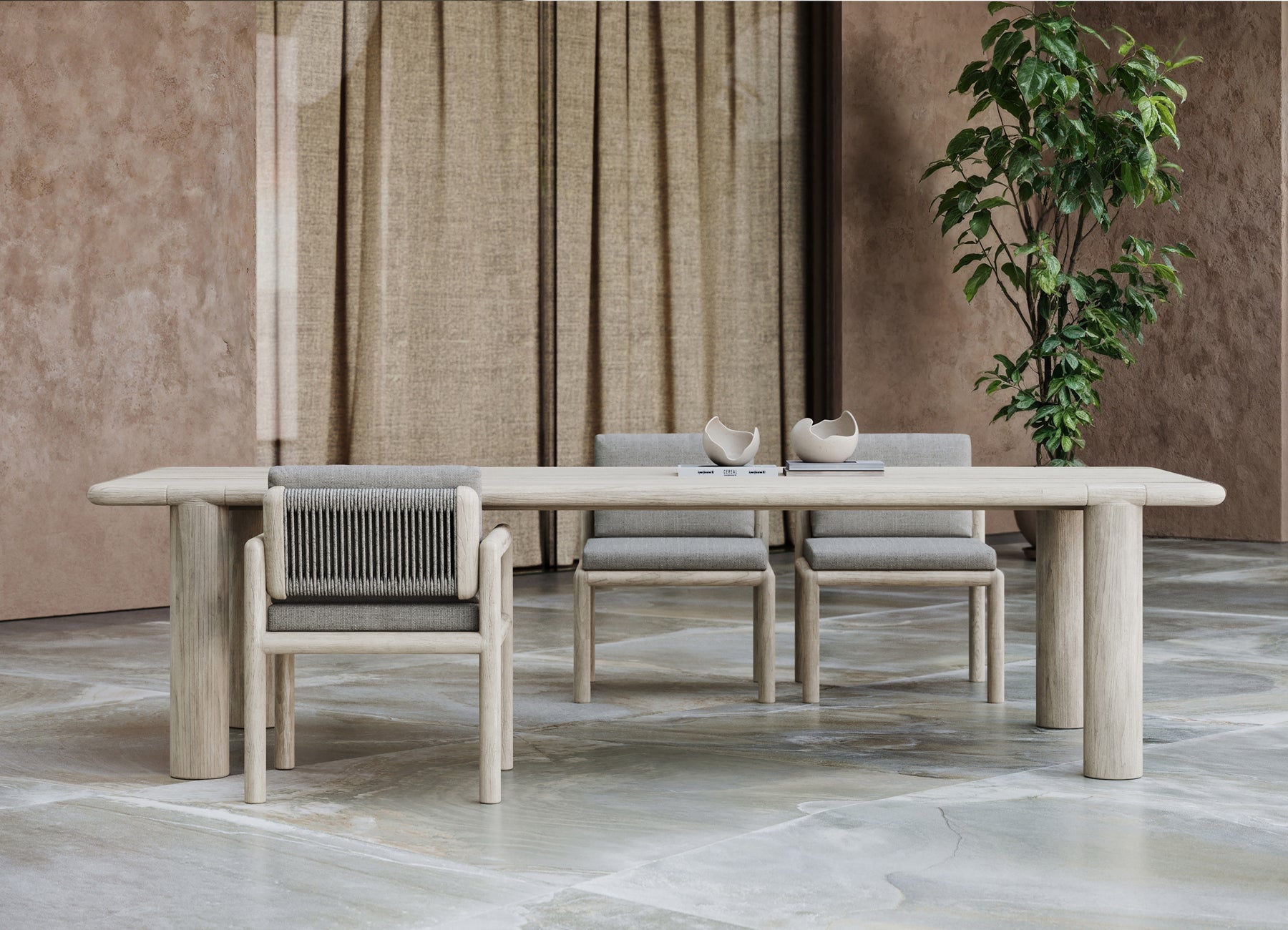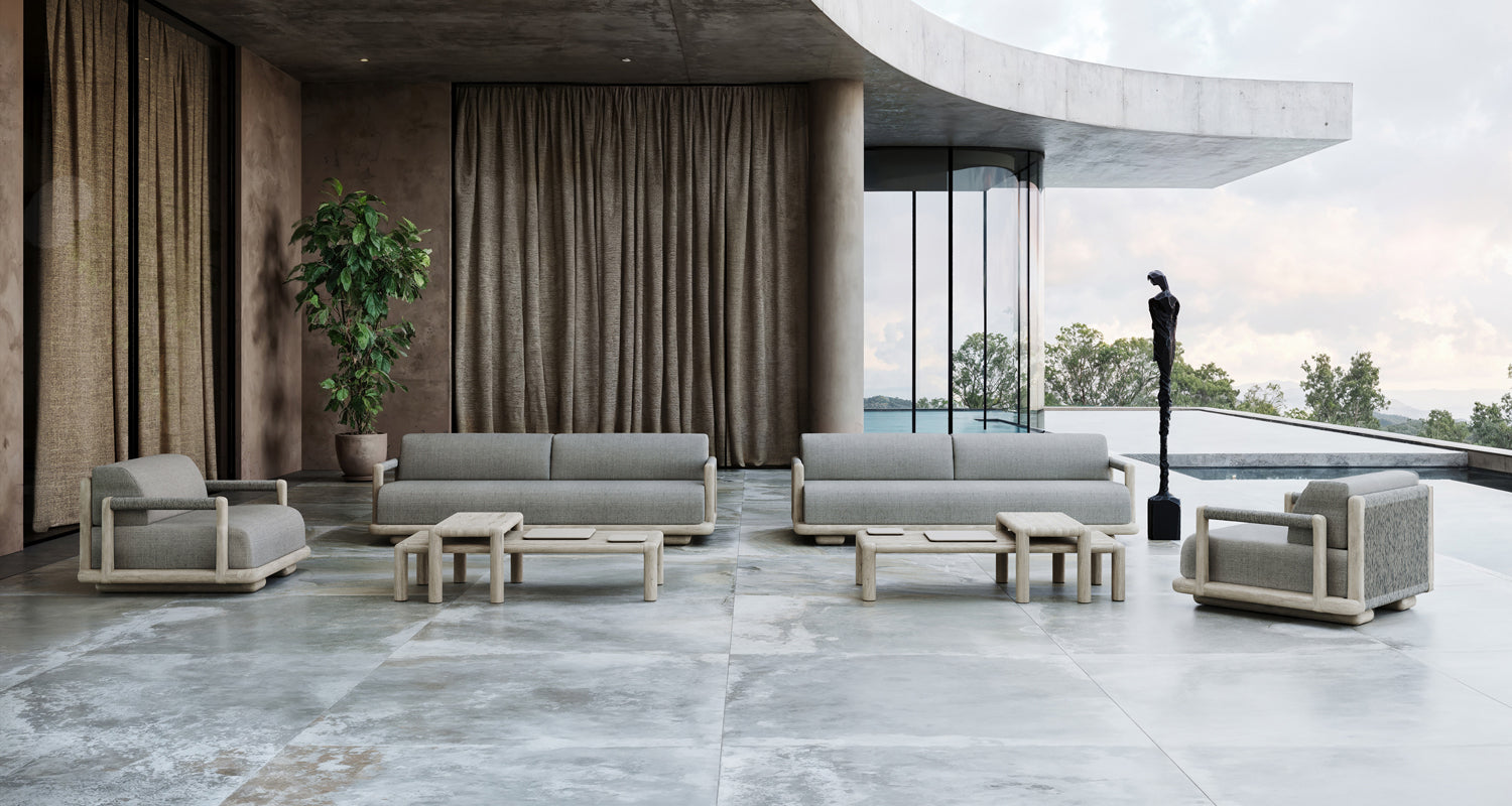 Crafted with a refined Ash and Natural Teak wood frame, the collection’s modularity invites creative configurations, allowing each piece to seamlessly adapt to different environments.