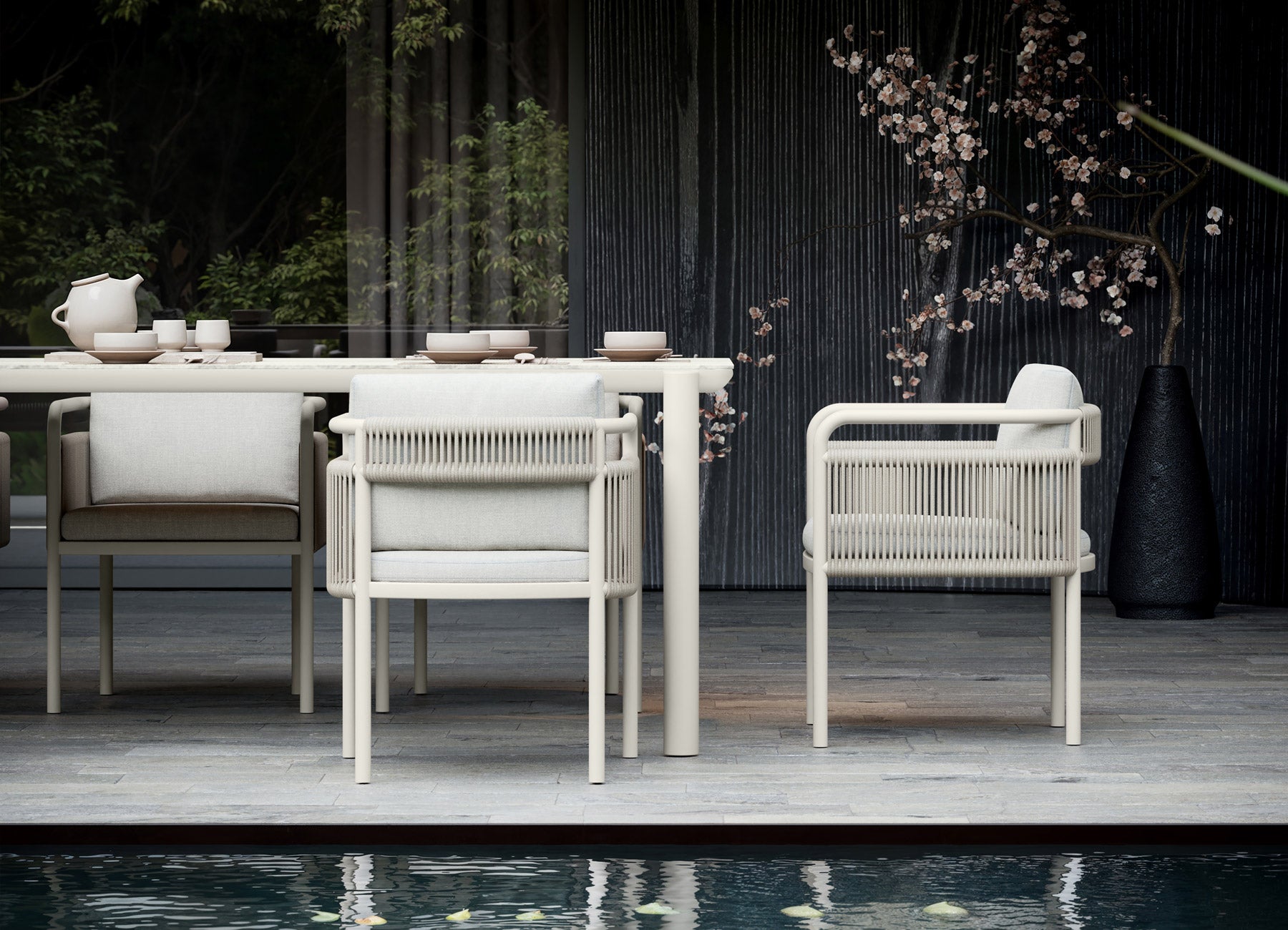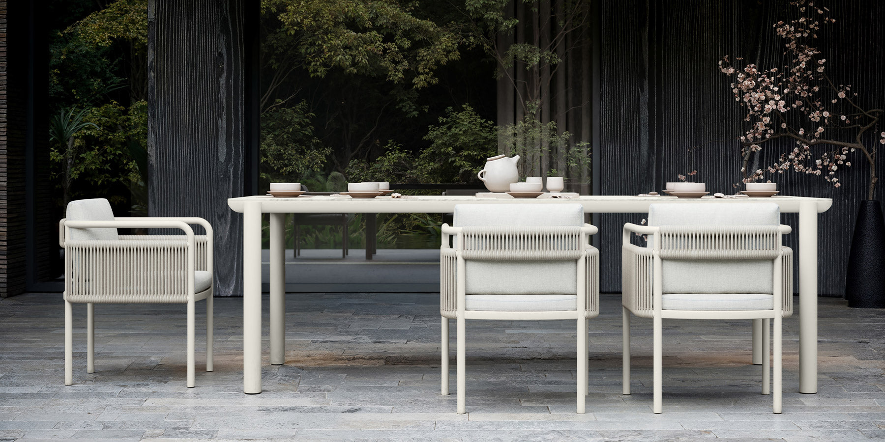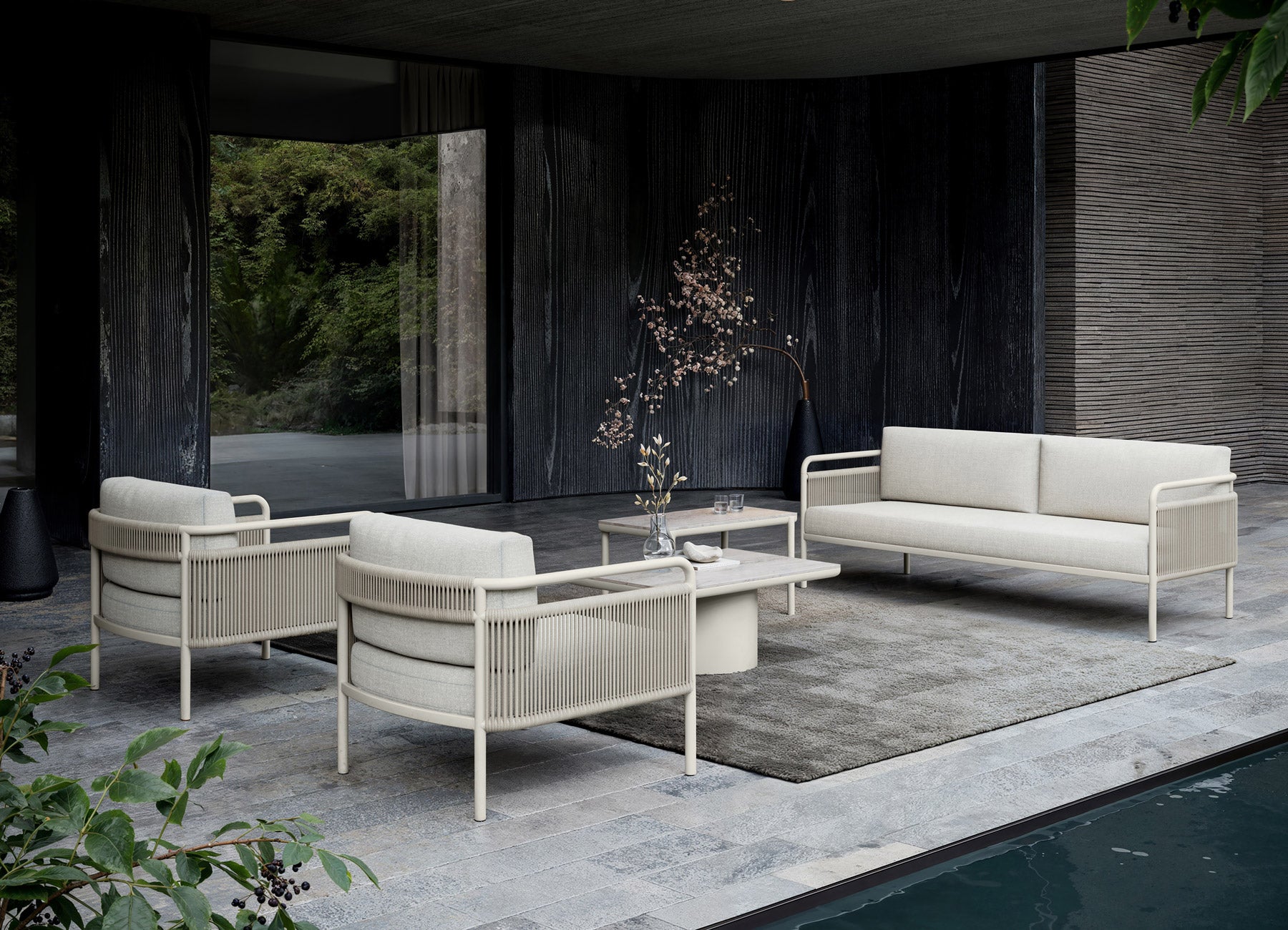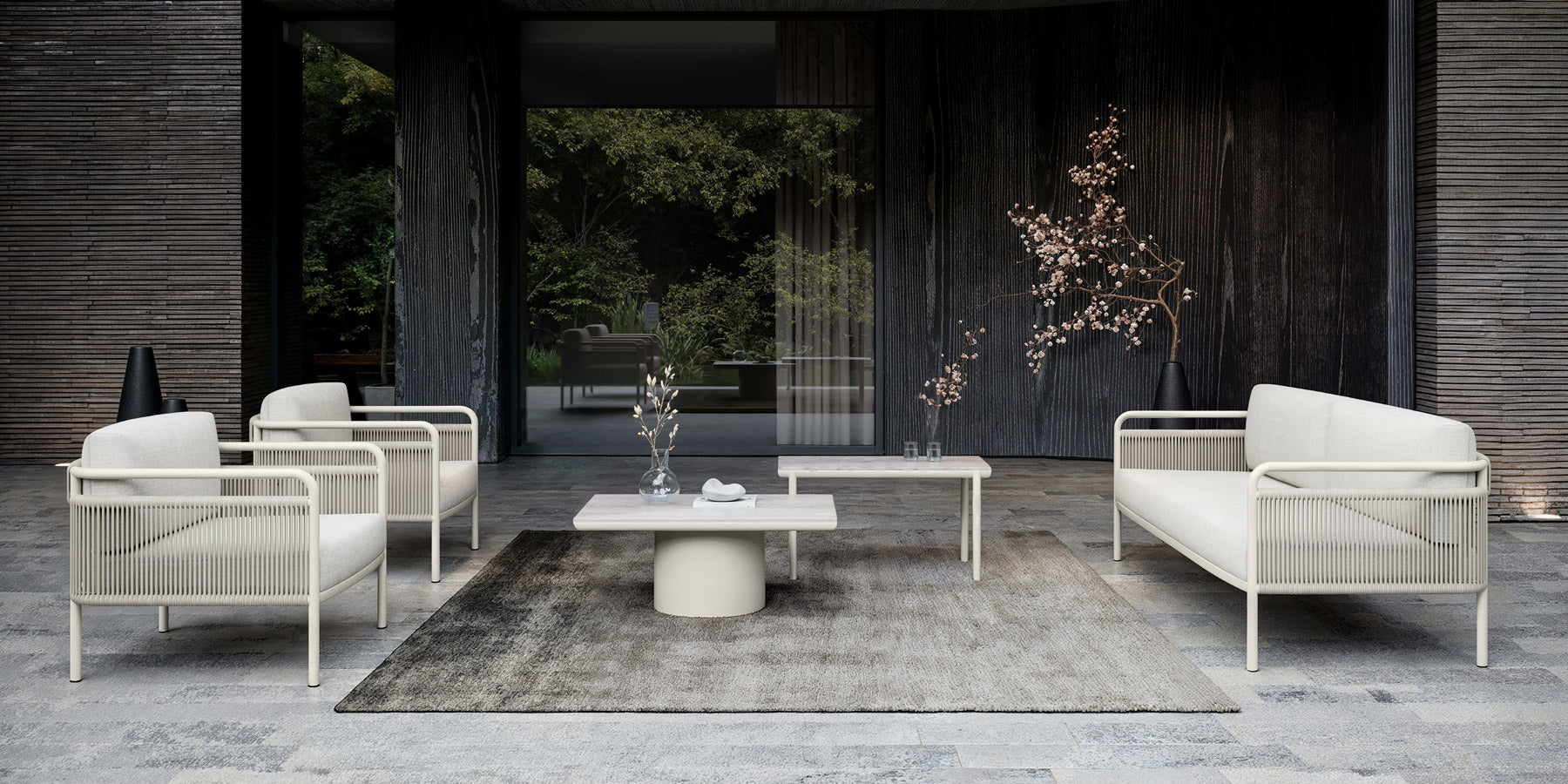 To express Link, Junpei & Iori Tamaki believed that a design with both simplicity and distinctive, memorable features was necessary. For the central pieces of the collection, such as chairs and sofas, Junpei & Iori Tamaki adopted a design that emphasizes the contrast between the parts wrapped with rope and those without, set against a simple frame structure.