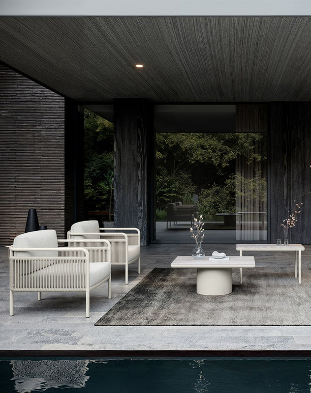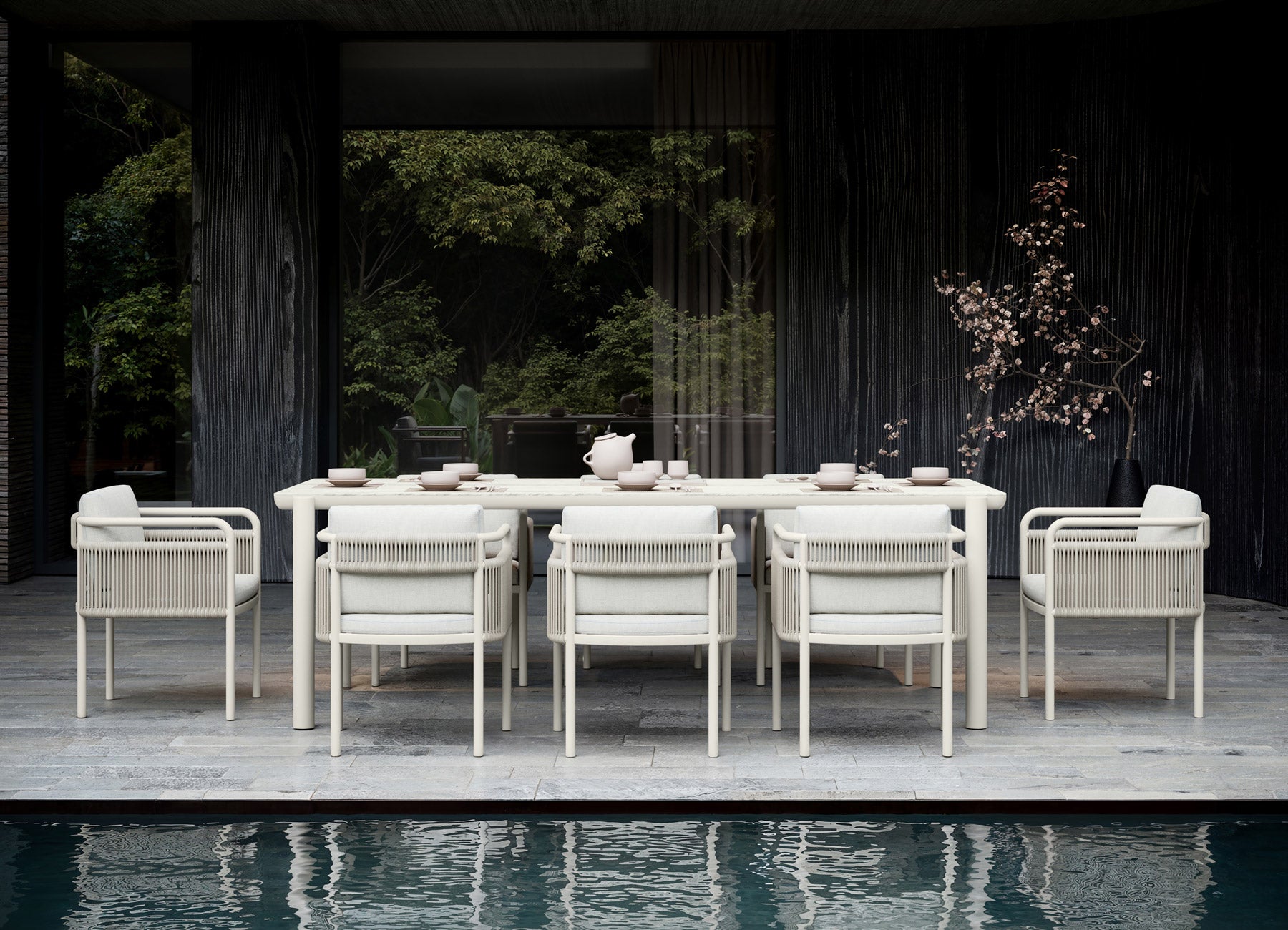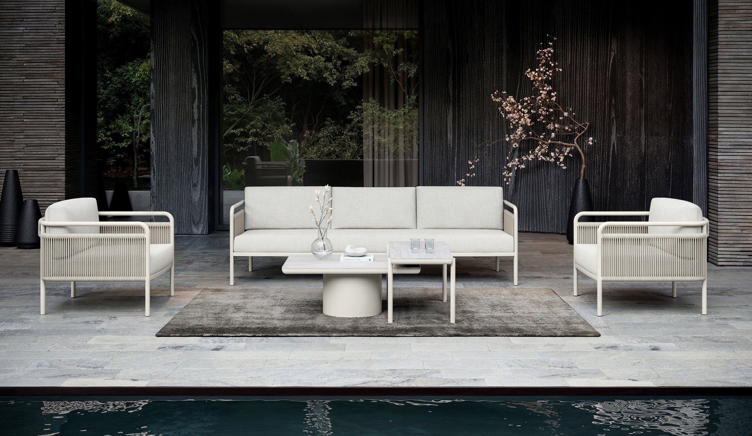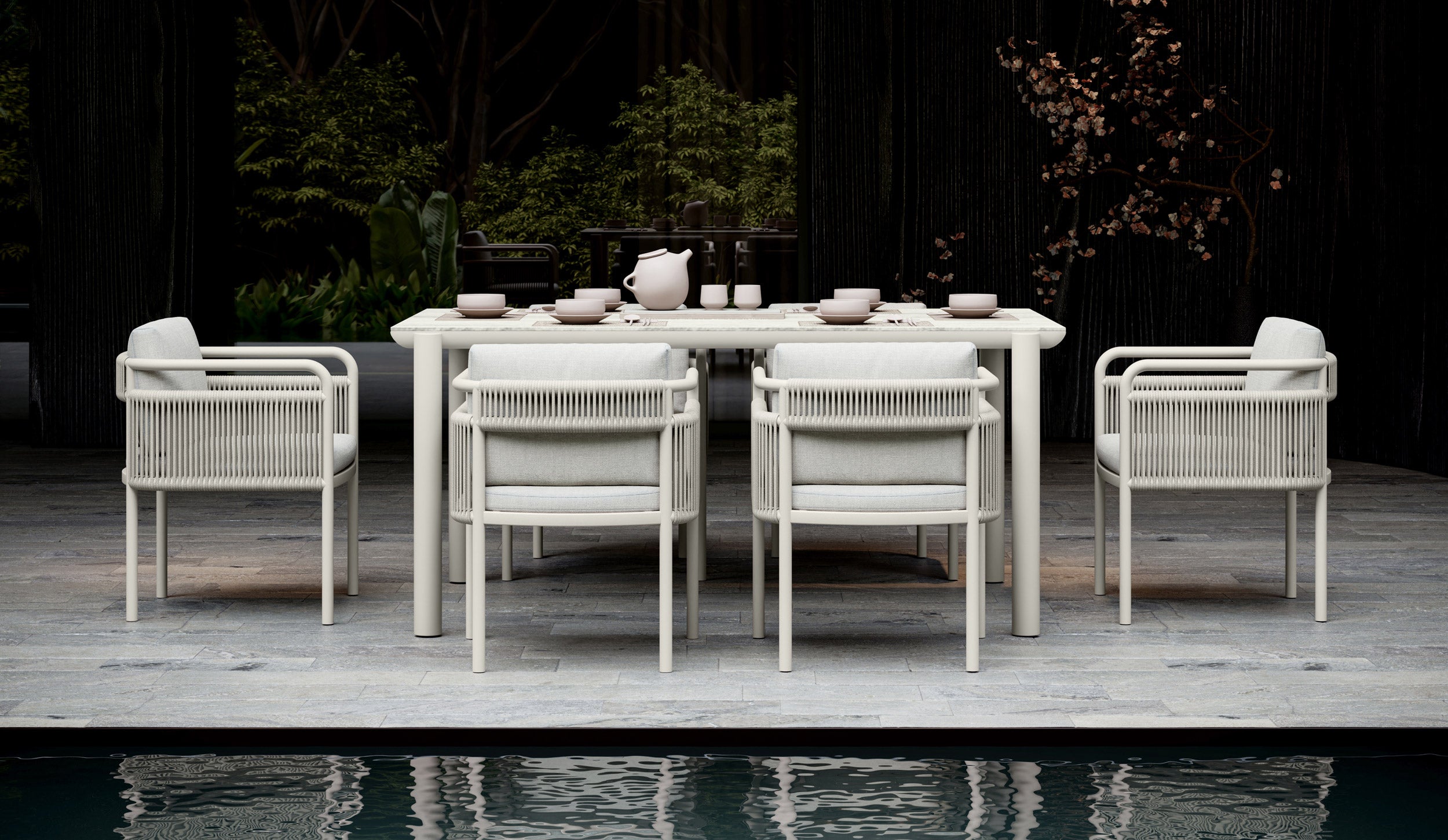 To express Link, Junpei & Iori Tamaki believed that a design with both simplicity and distinctive, memorable features was necessary. For the central pieces of the collection, such as chairs and sofas, Junpei & Iori Tamaki adopted a design that emphasizes the contrast between the parts wrapped with rope and those without, set against a simple frame structure.