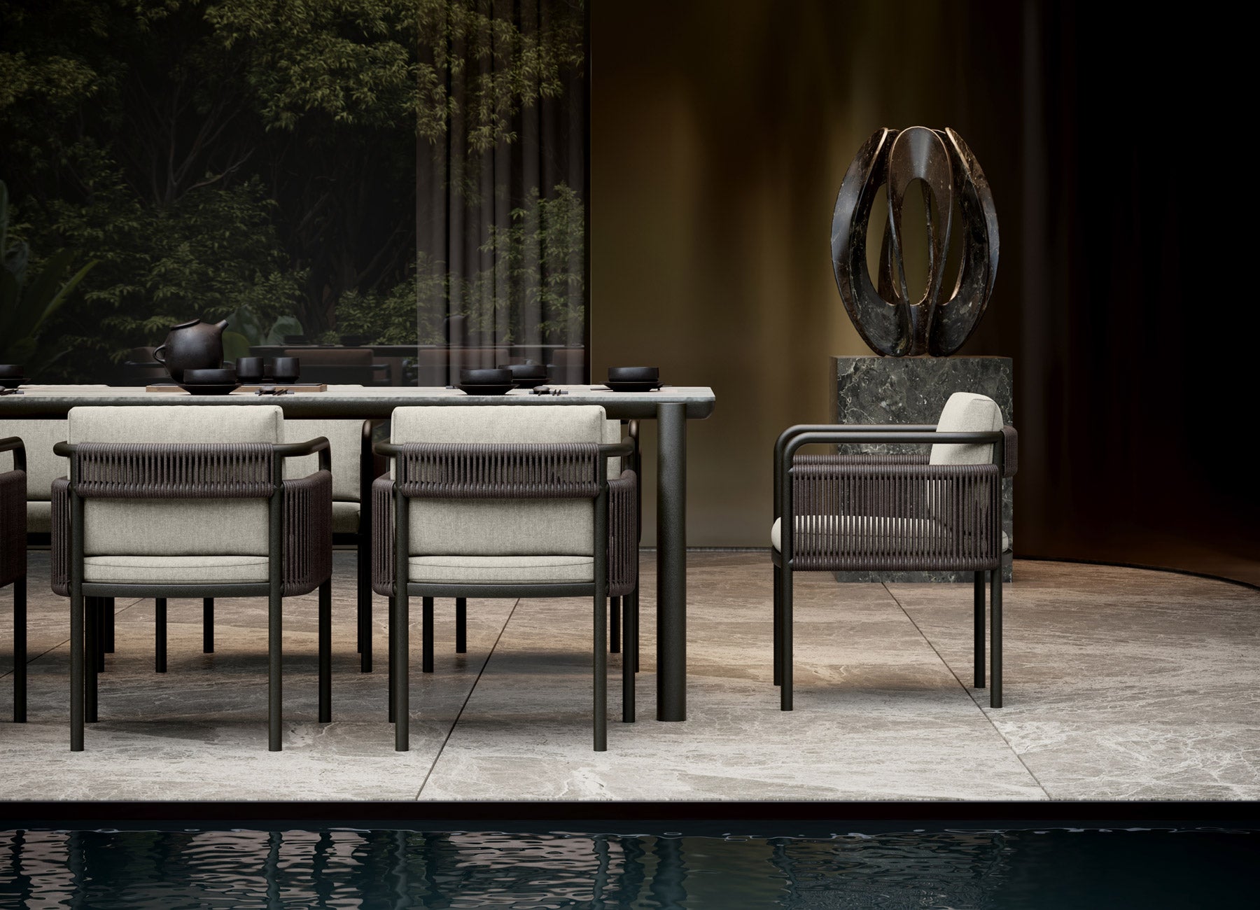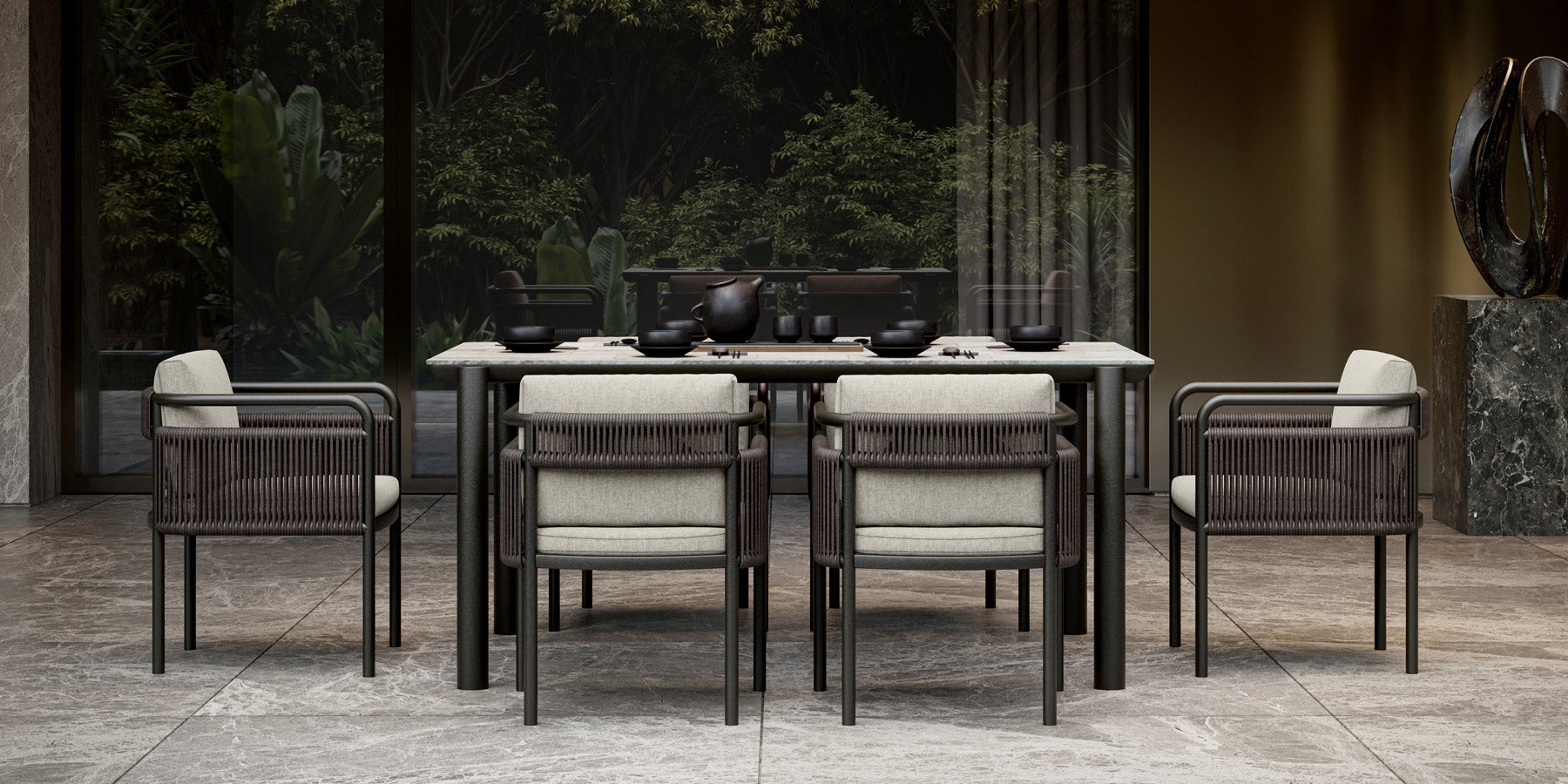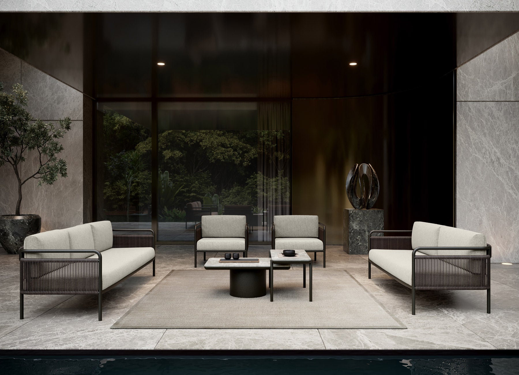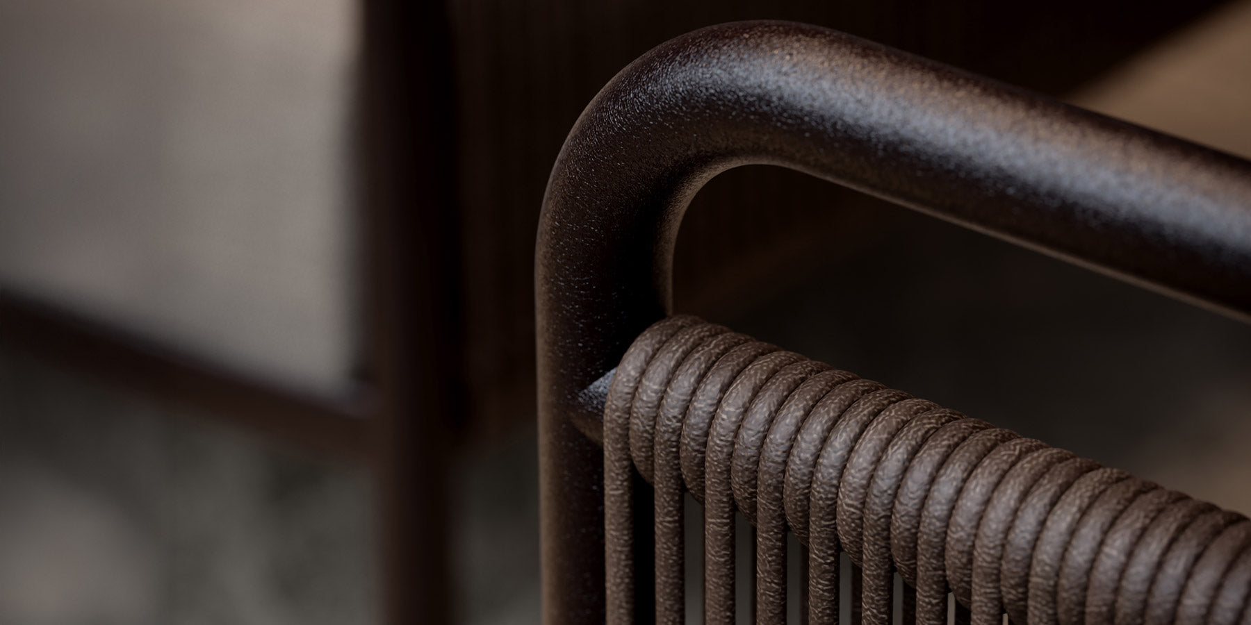 To express Link, Junpei & Iori Tamaki believed that a design with both simplicity and distinctive, memorable features was necessary. For the central pieces of the collection, such as chairs and sofas, Junpei & Iori Tamaki adopted a design that emphasizes the contrast between the parts wrapped with rope and those without, set against a simple frame structure.