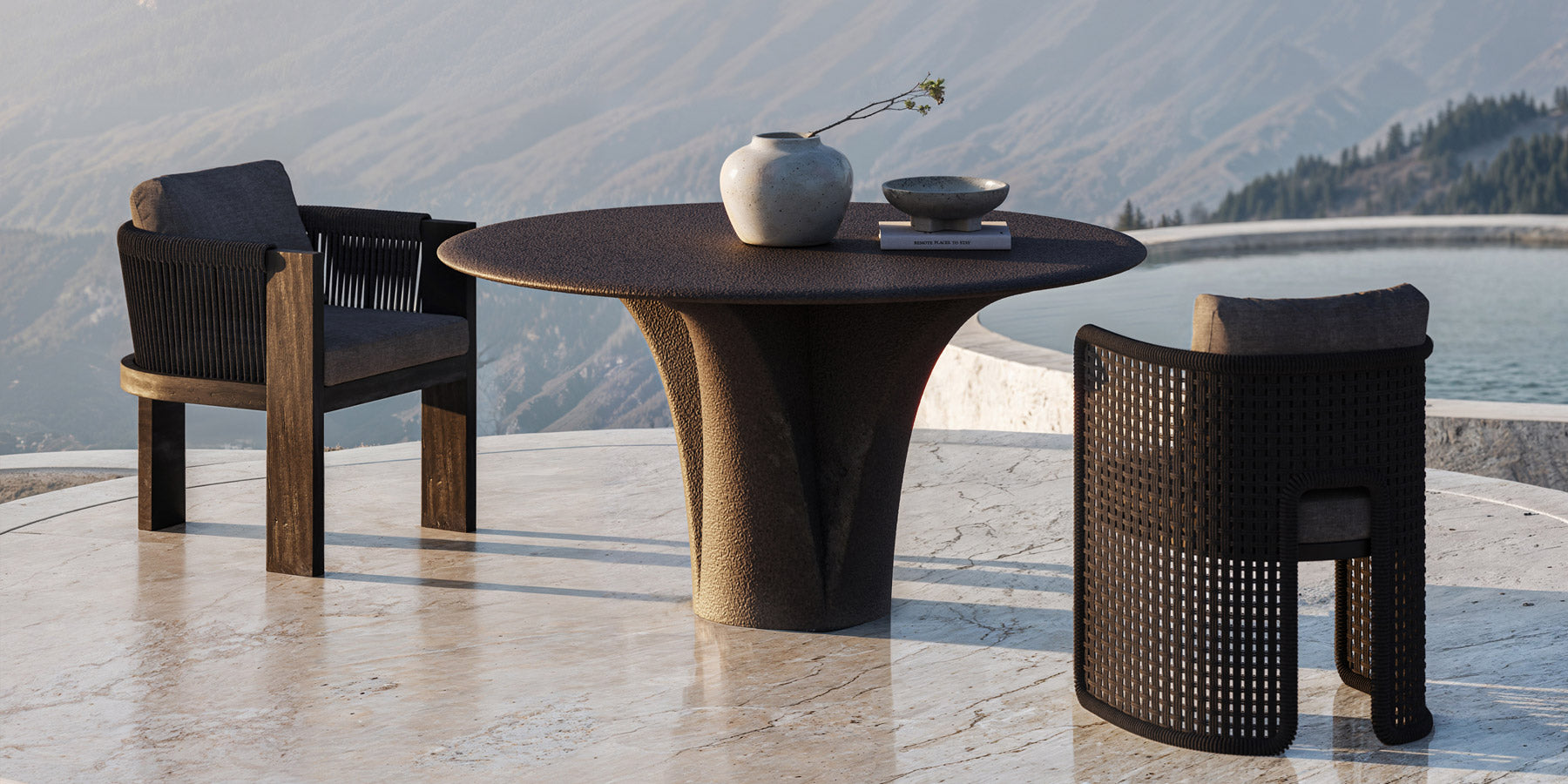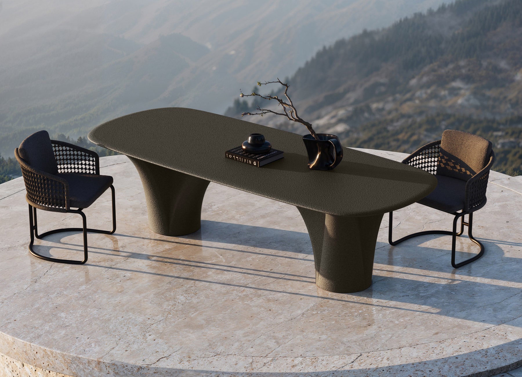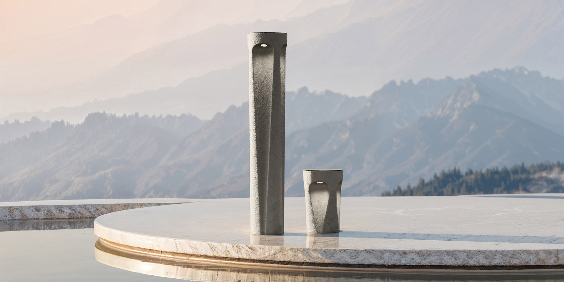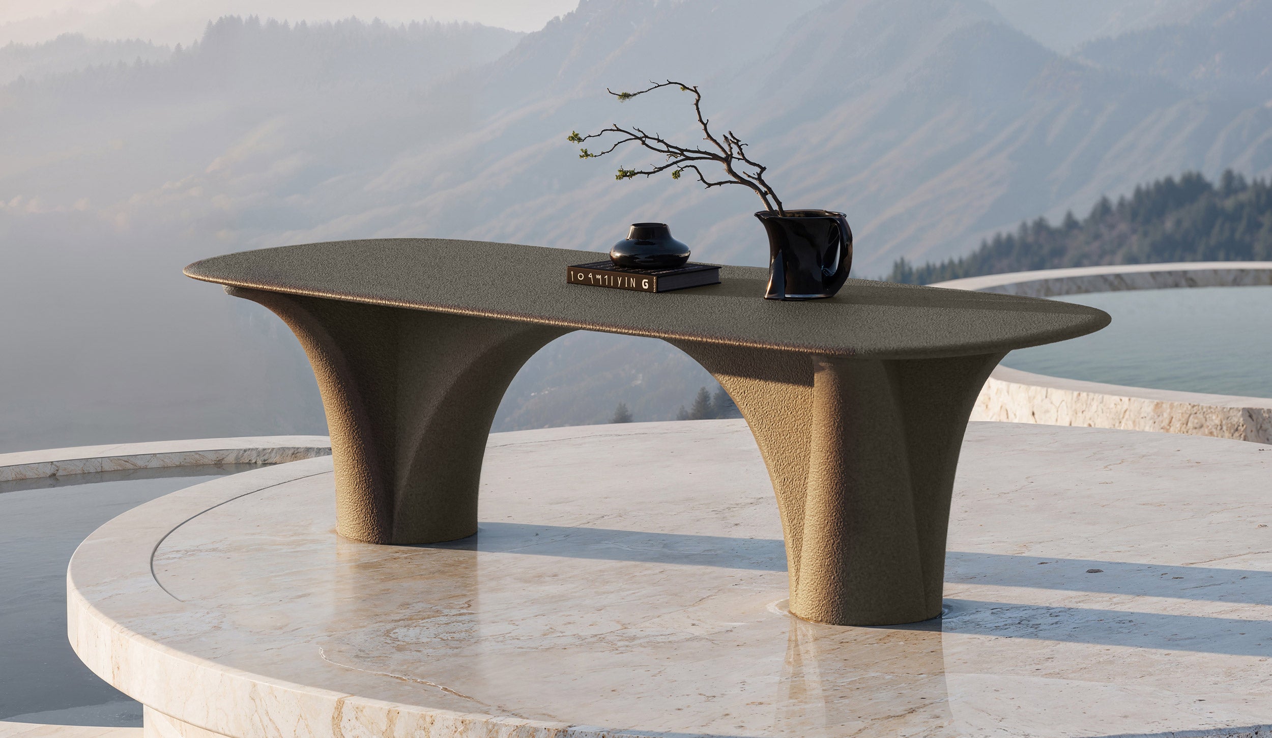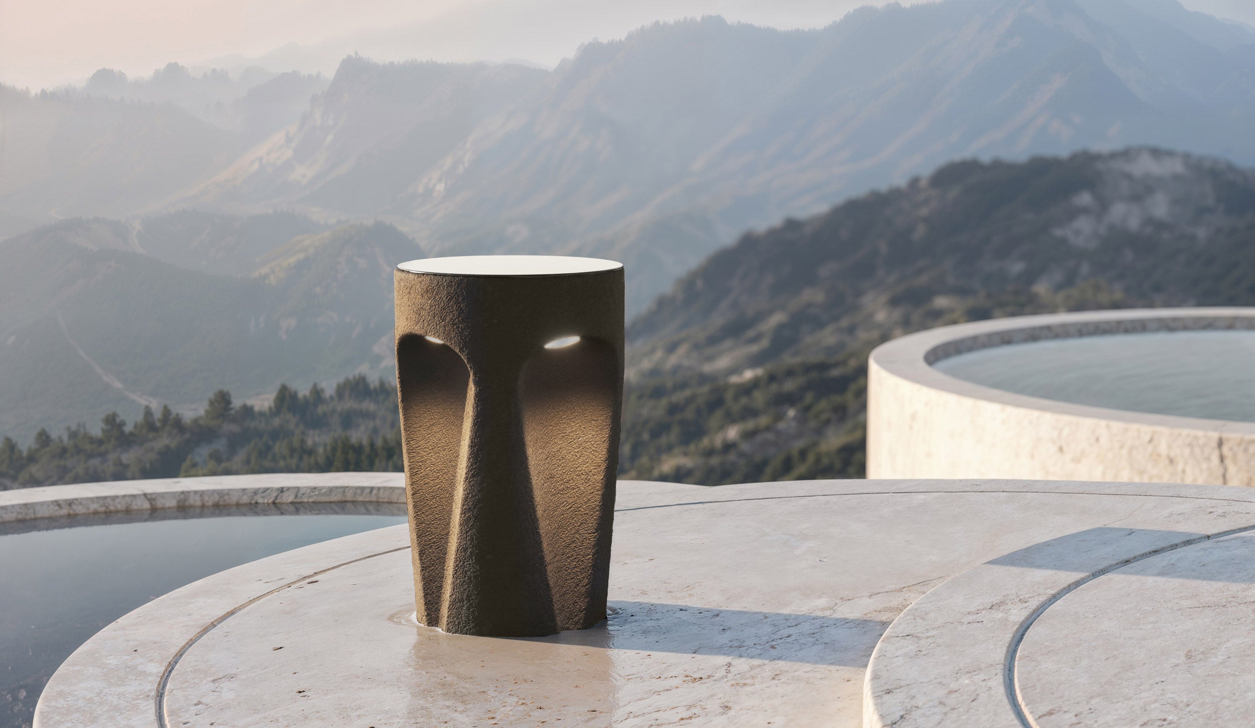 Through the use of digital technologies, parabolic curves and advanced manufacturing at SNOC, Patryk created sleek and supple forms that defy convention in a durable sandstone like composite. The unique textured finish of tables and lightings diffuses light giving the surface a sophisticated complexity. Savio Tables are the definitive statement piece for both indoor and outdoor living.