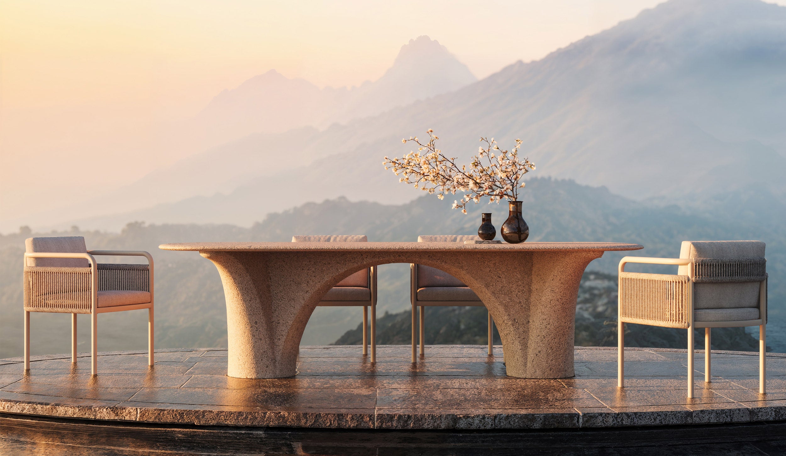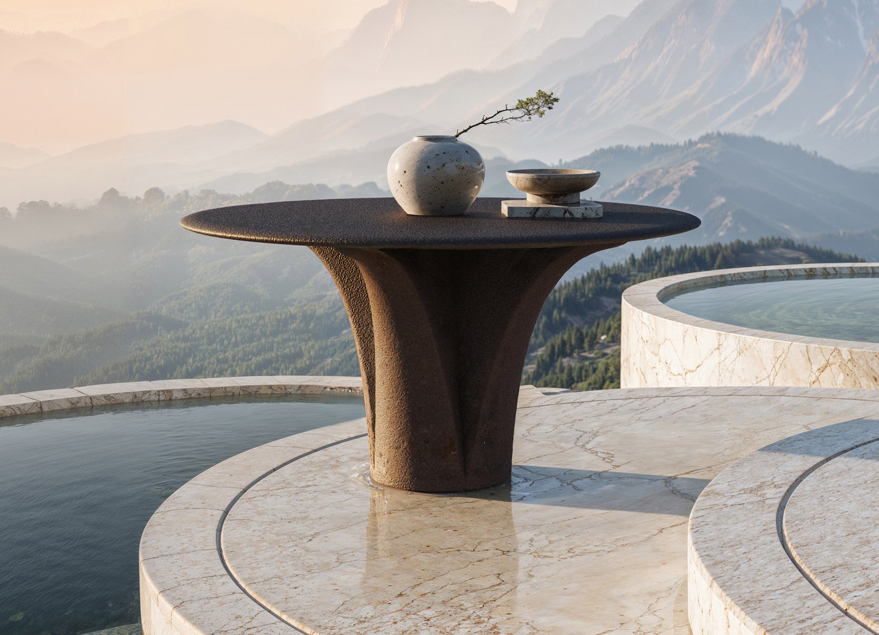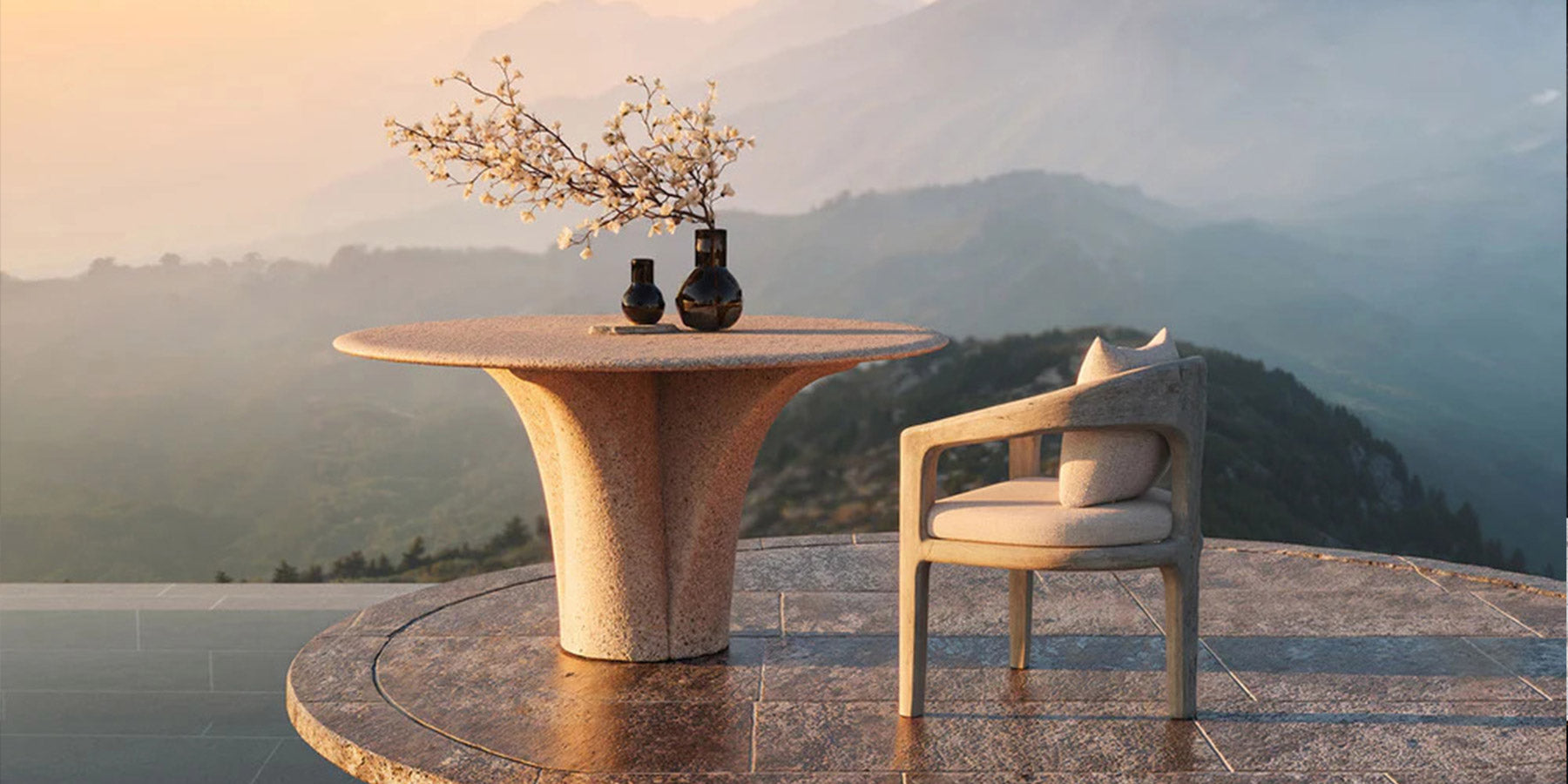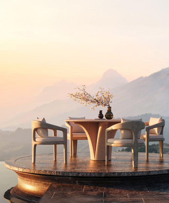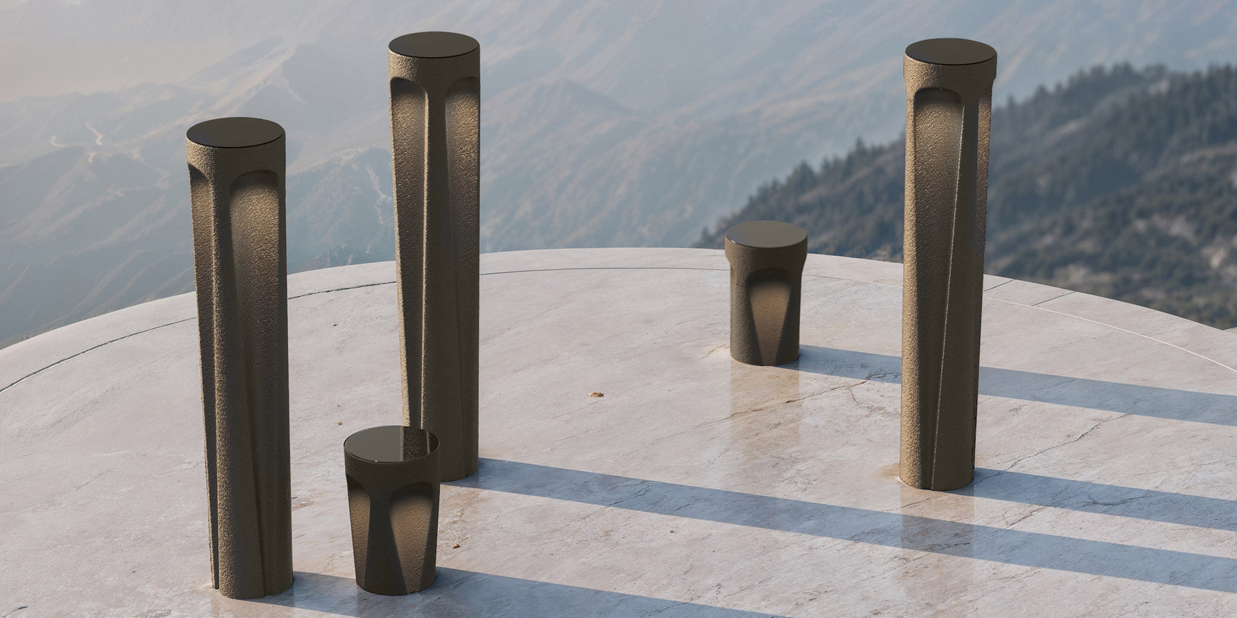 Through the use of digital technologies, parabolic curves and advanced manufacturing at SNOC, Patryk created sleek and supple forms that defy convention in a durable sandstone like composite. The unique textured finish of tables and lightings diffuses light giving the surface a sophisticated complexity. Savio Tables are the definitive statement piece for both indoor and outdoor living.