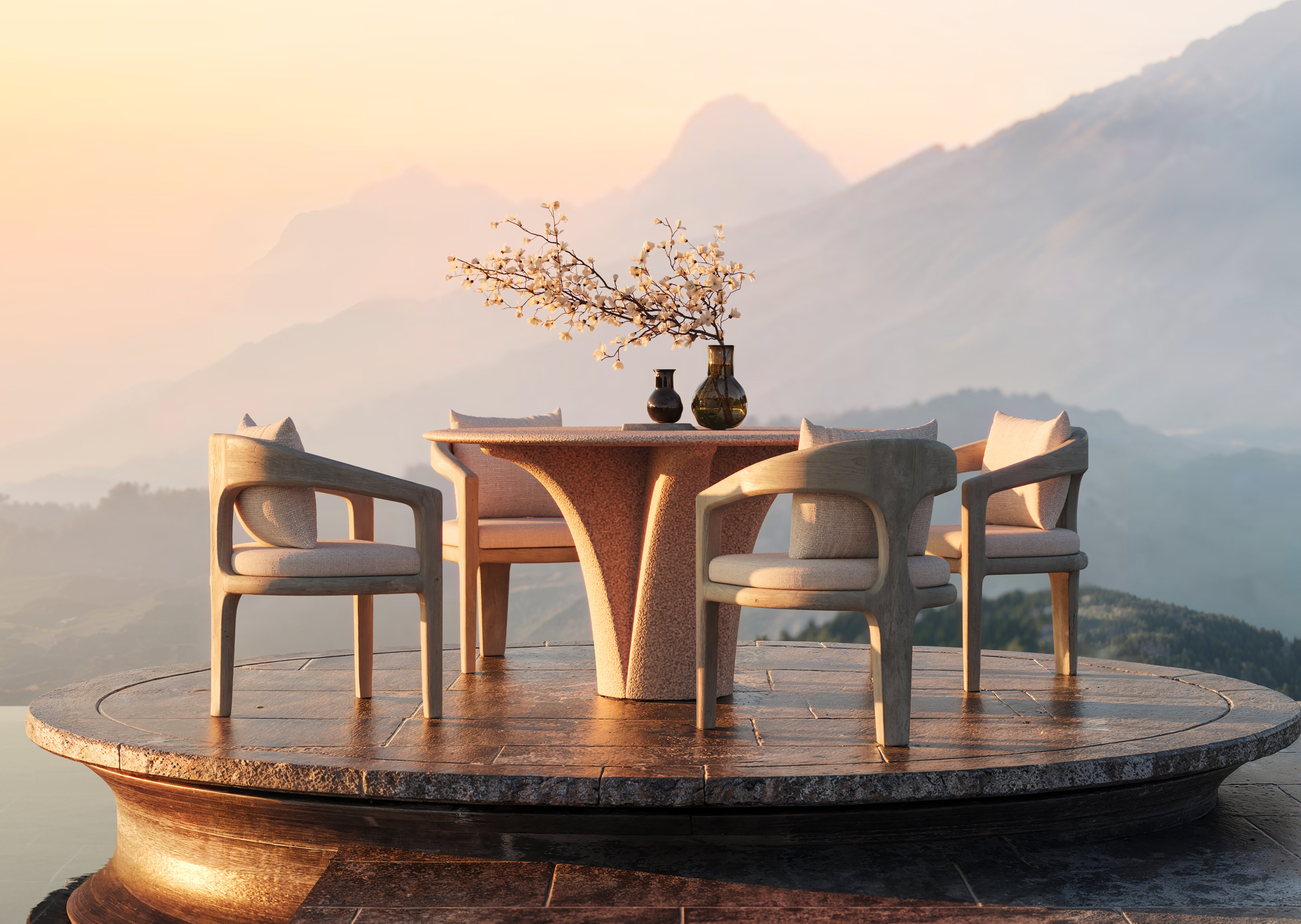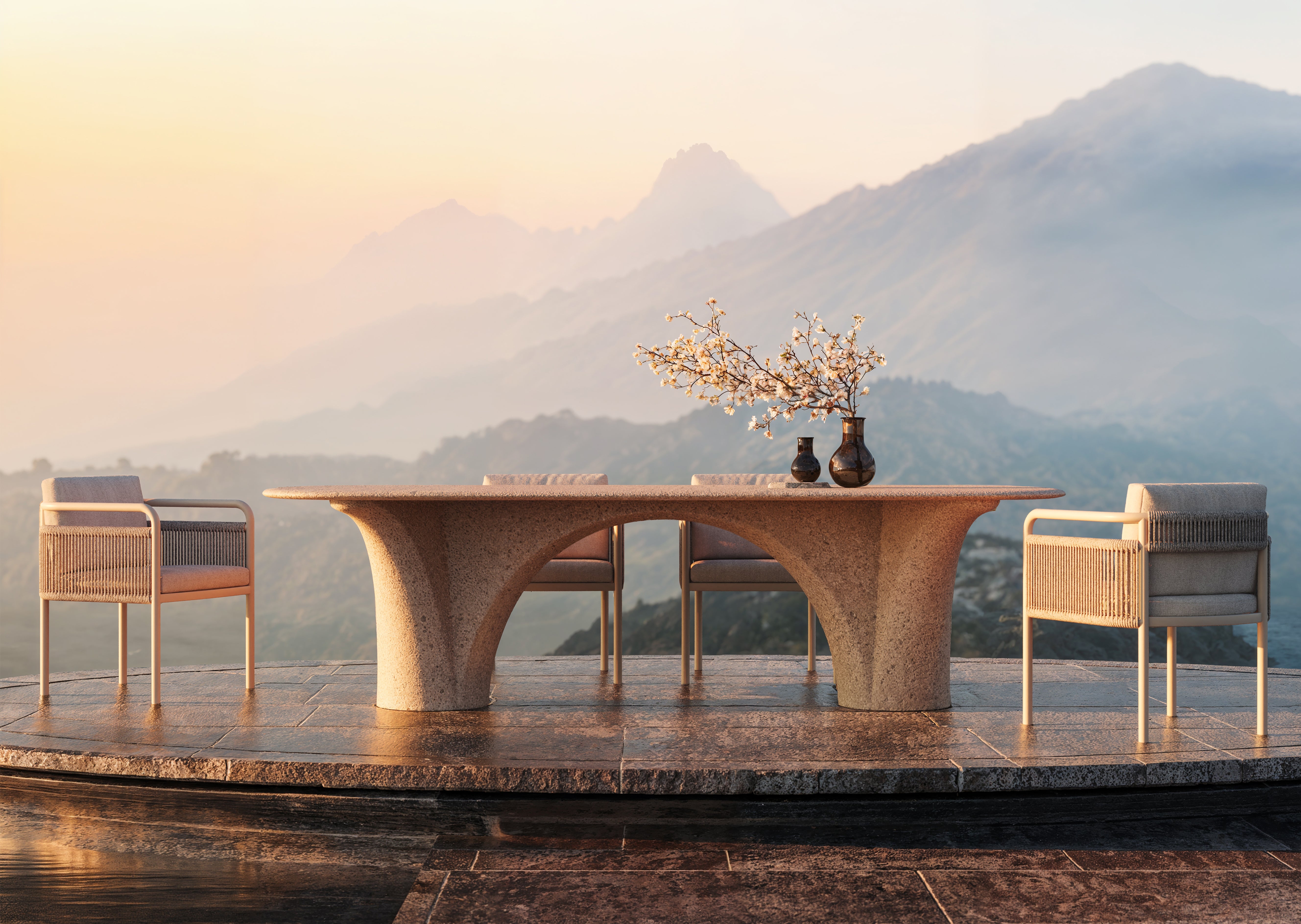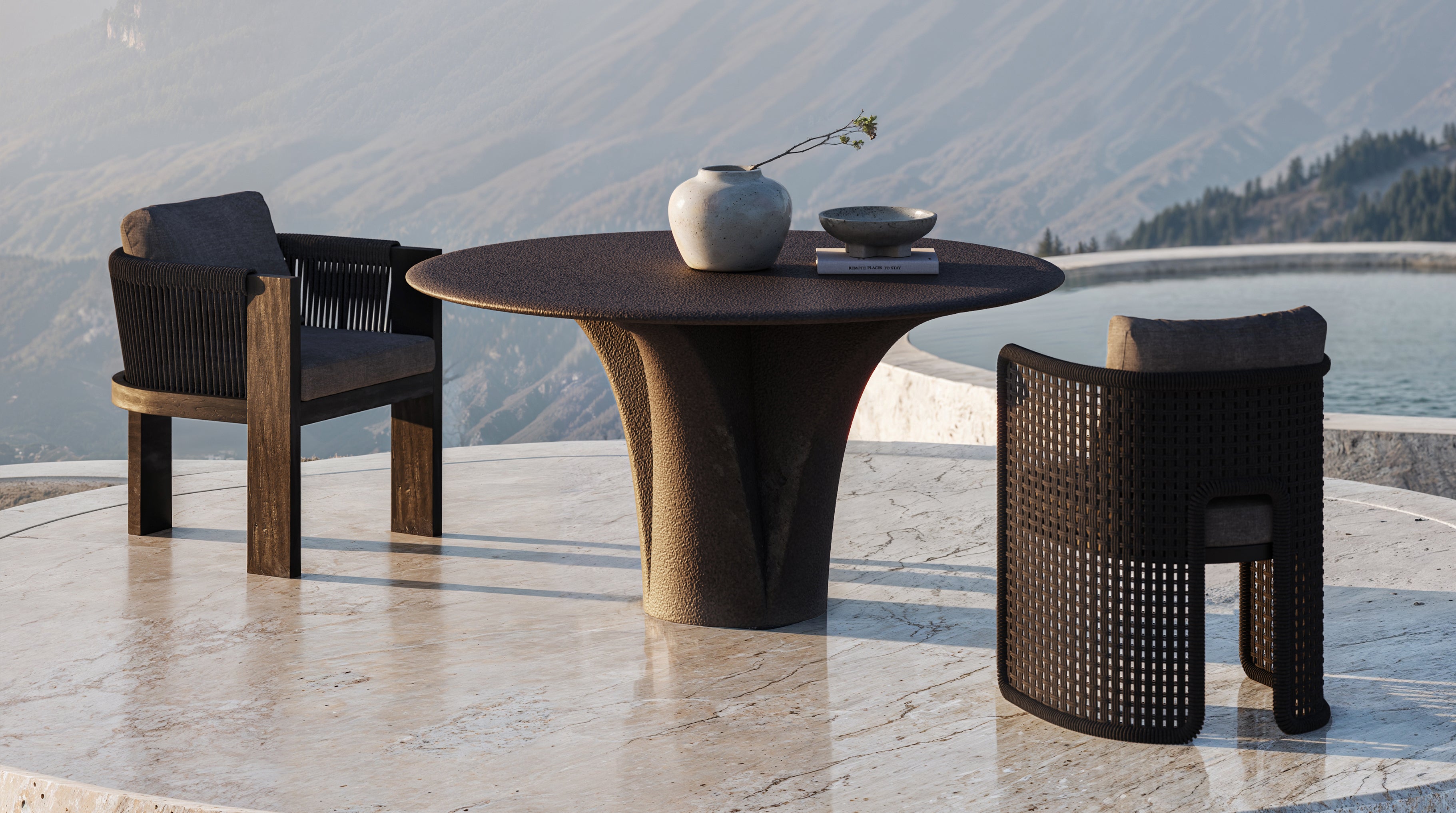 The unique textured finish of tables and lightings diffuses light giving the surface a sophisticated complexity. Savio Dining Tables are the definitive statement piece for outdoor living.