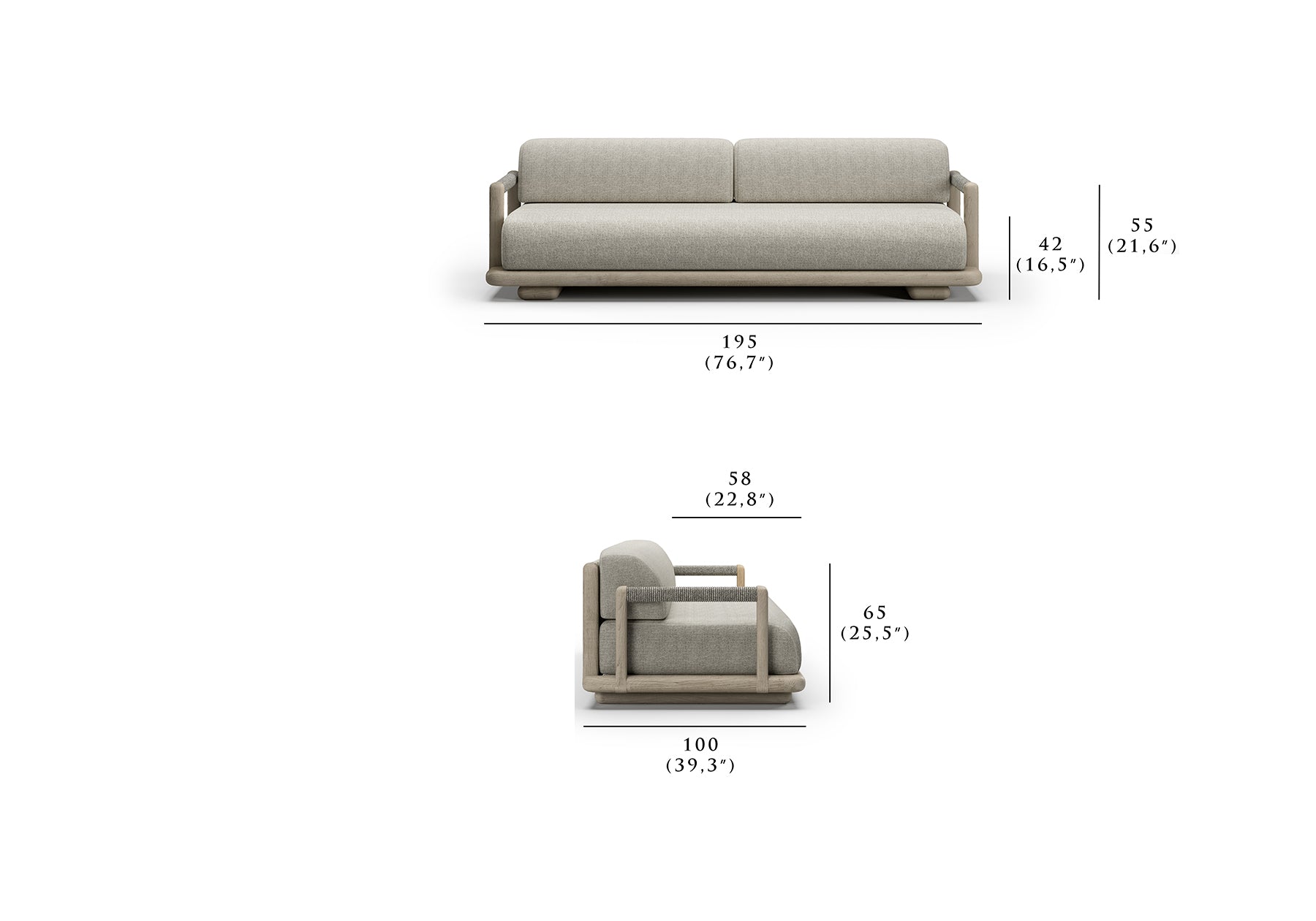 2 Seater Sofa: 195 cm x 100 cm x 65 cm