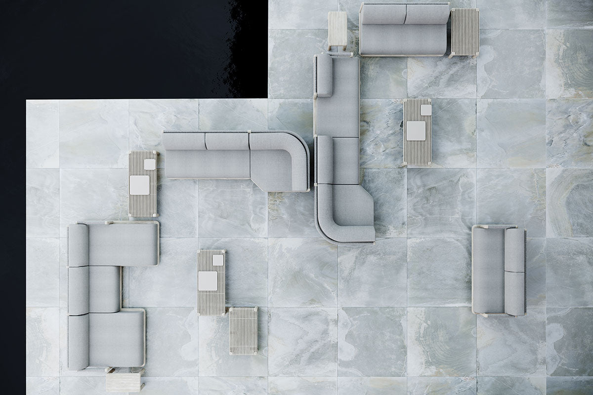timeless materials. Designed for both outdoor settings, this modular lounge series prioritizes