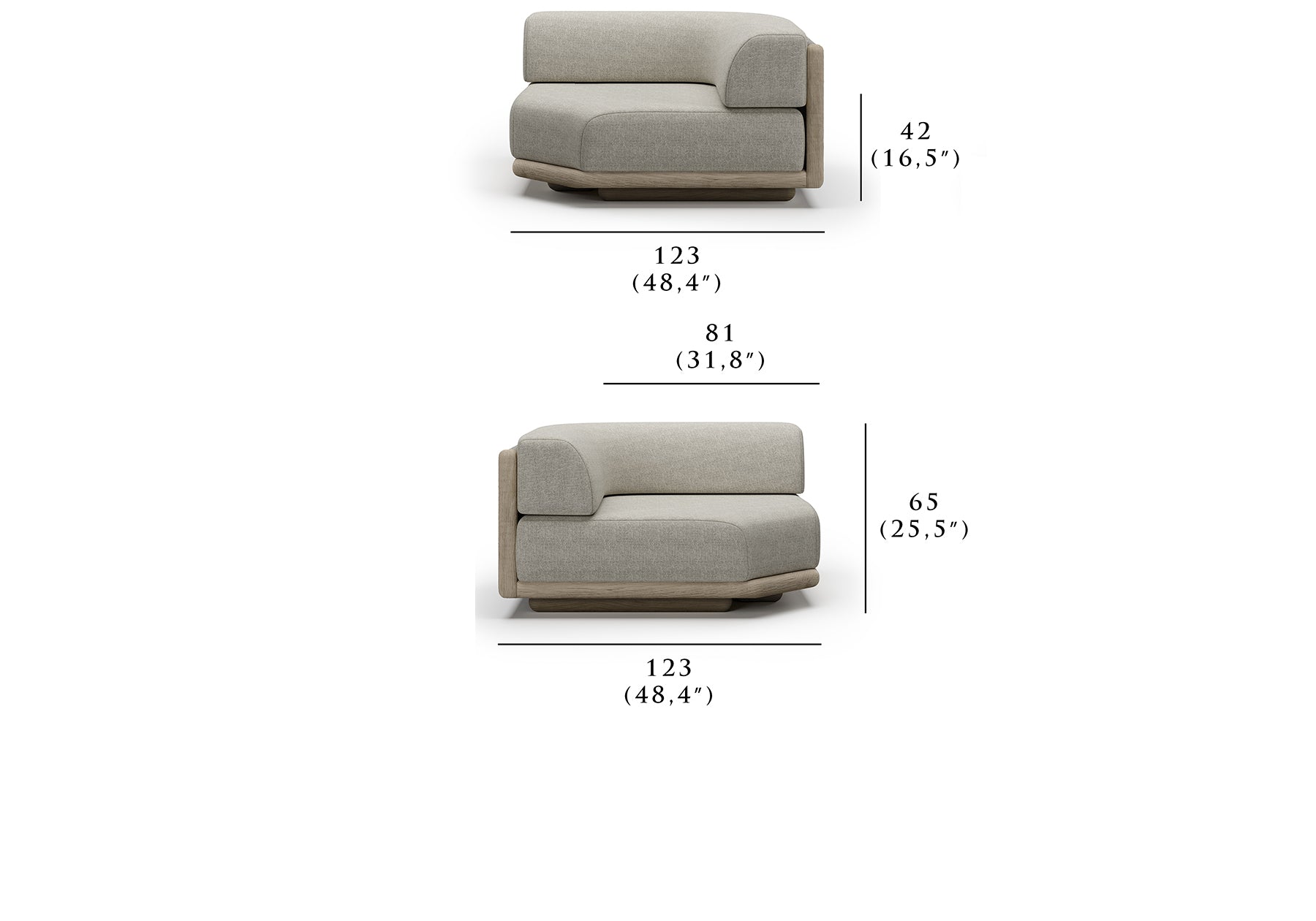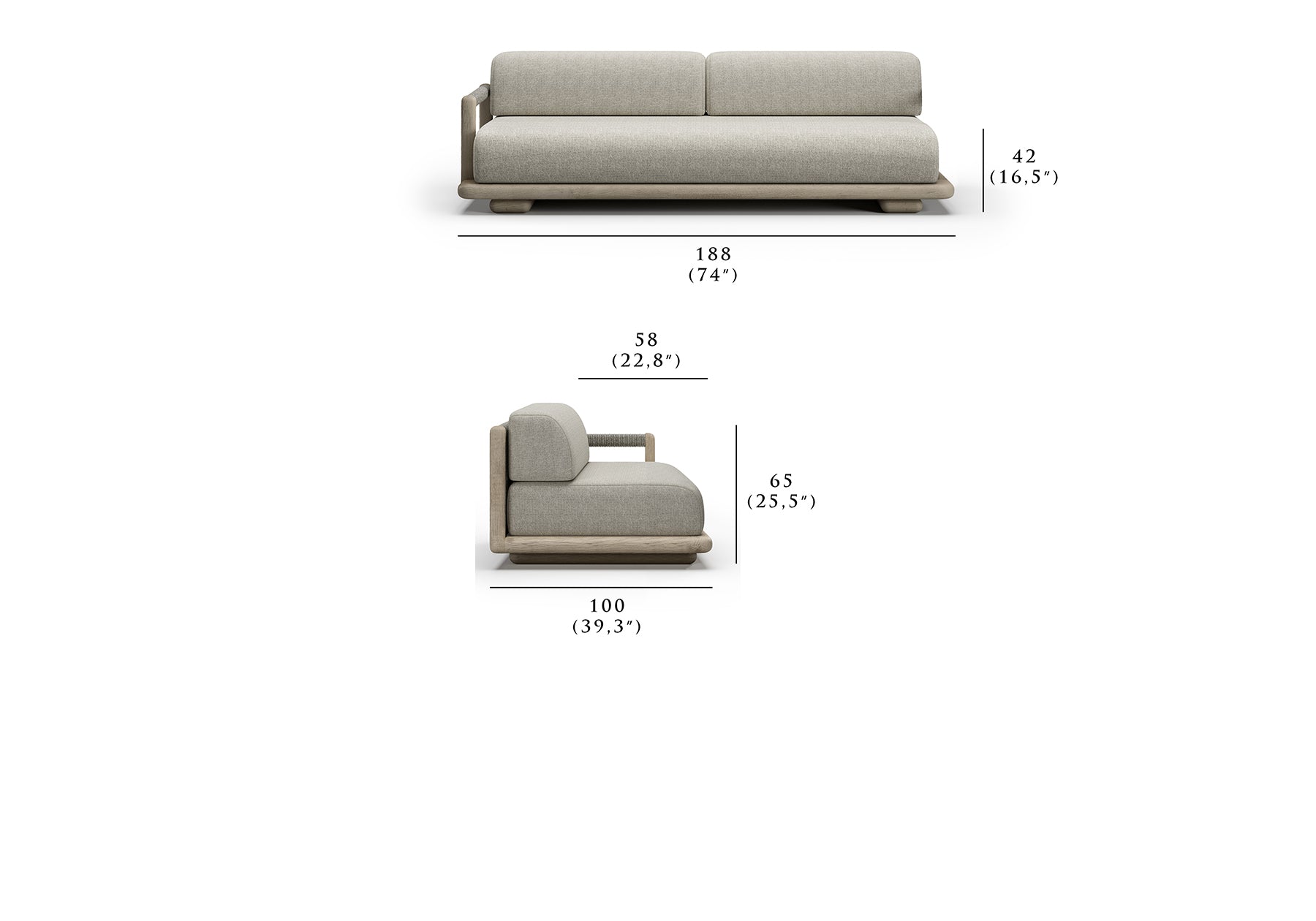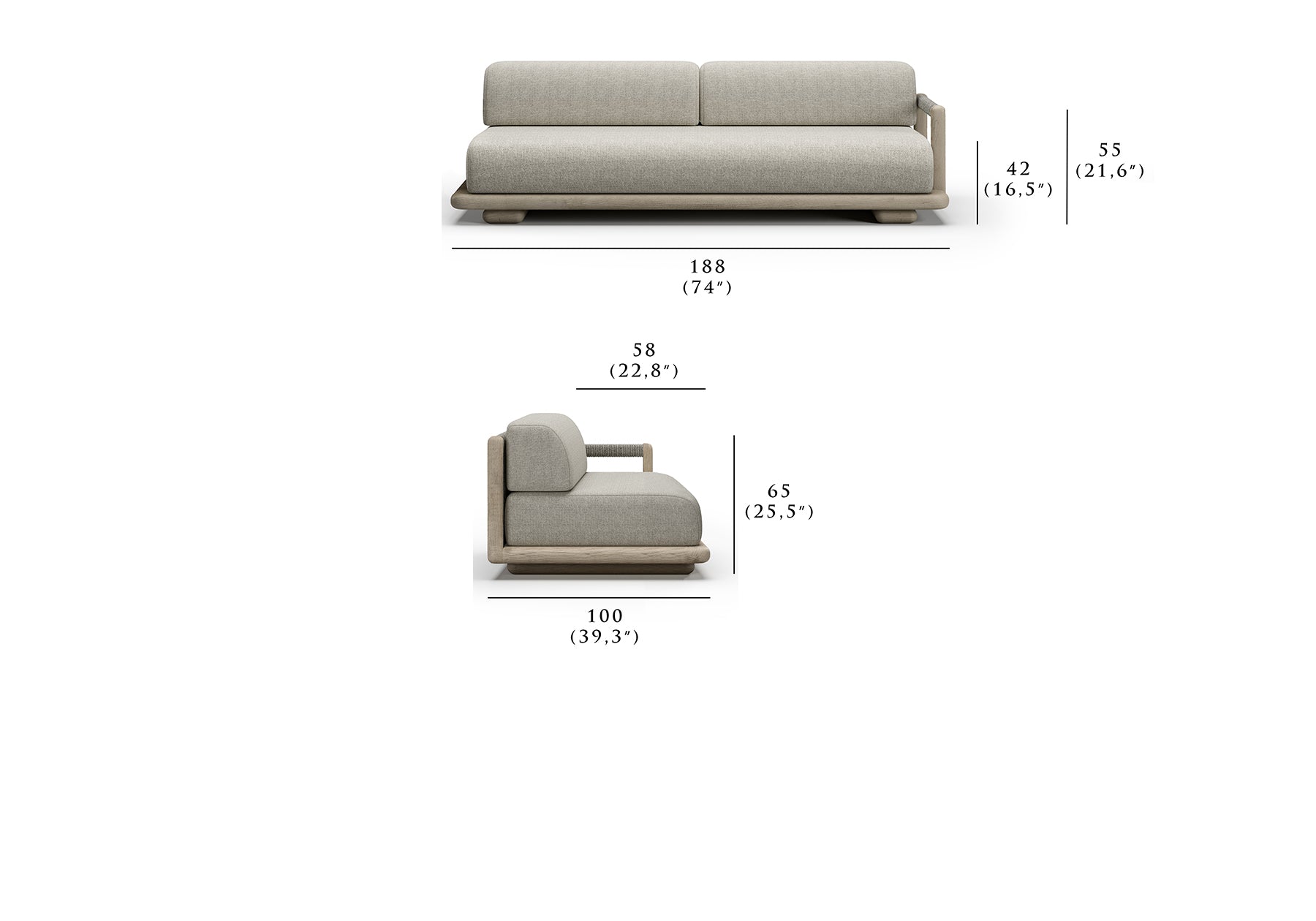 2 Seater Left Module: 188 cm x 100 cm x 66 cm
