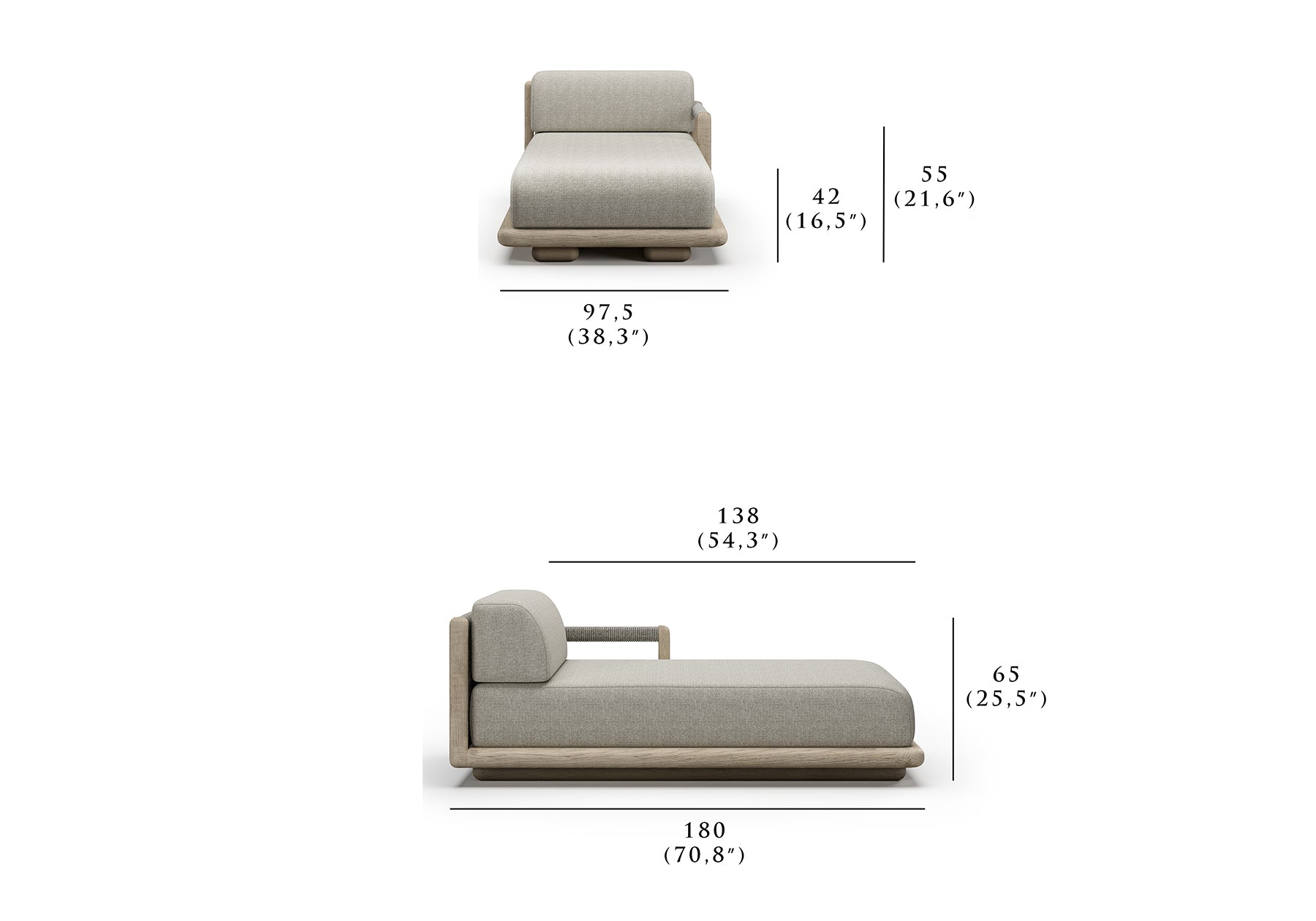 Daybed: 97,5 cm x 180 cm x 65 cm