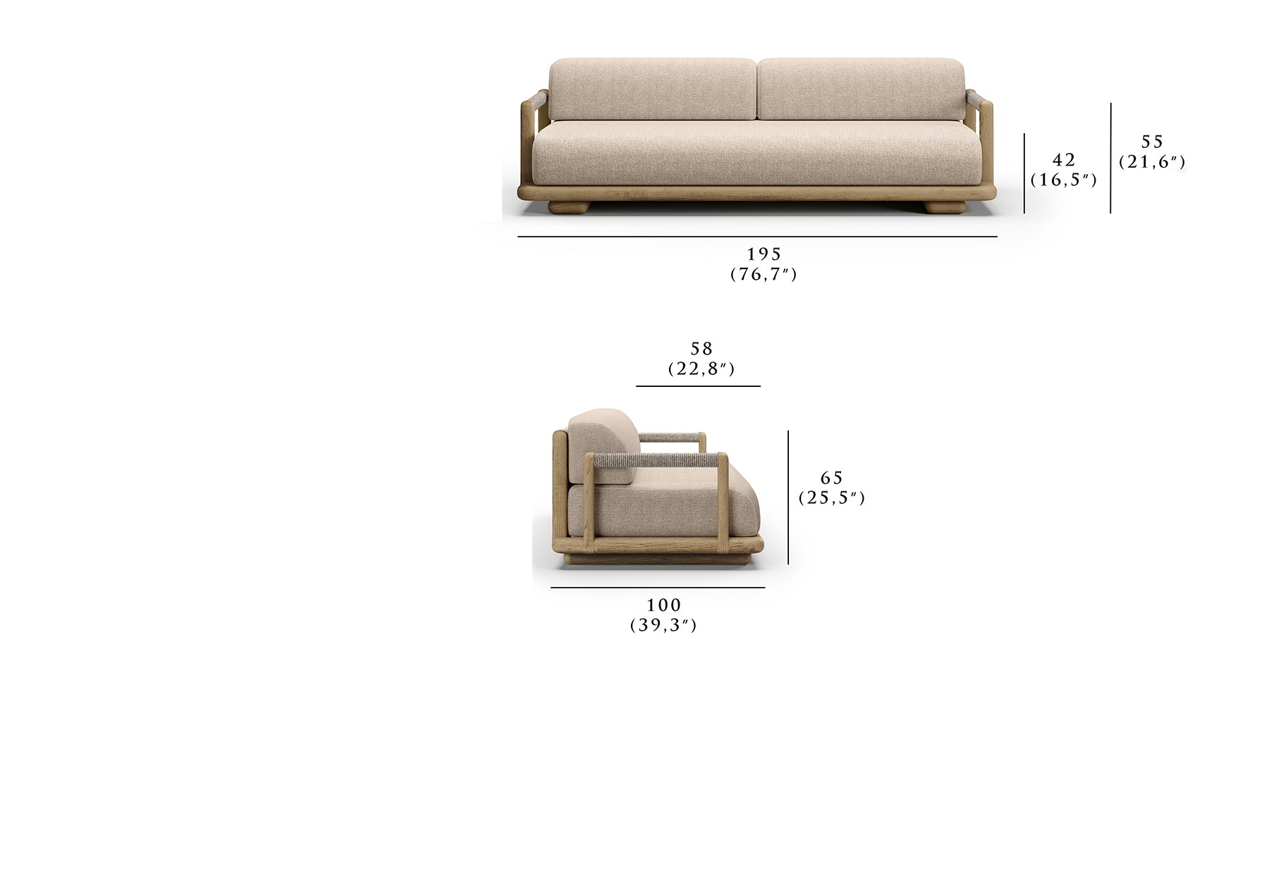 2 Seater Sofa: 195 cm x 100 cm x 65 cm