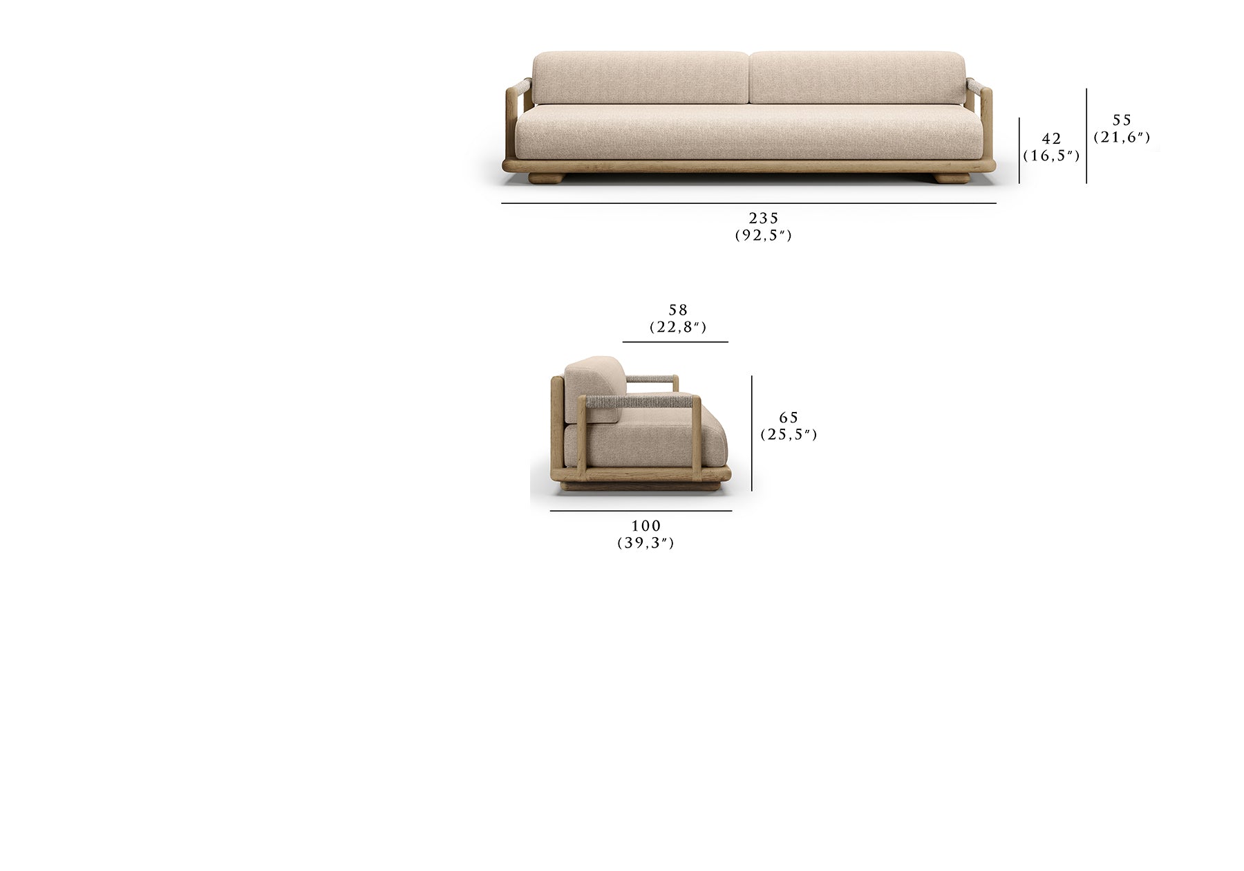 3 Seater Sofa: 235 cm x 100 cm x 65 cm