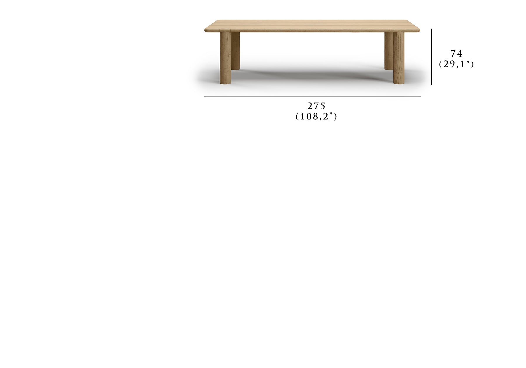 Dining Table: 275 cm x 115 cm x 74 cm