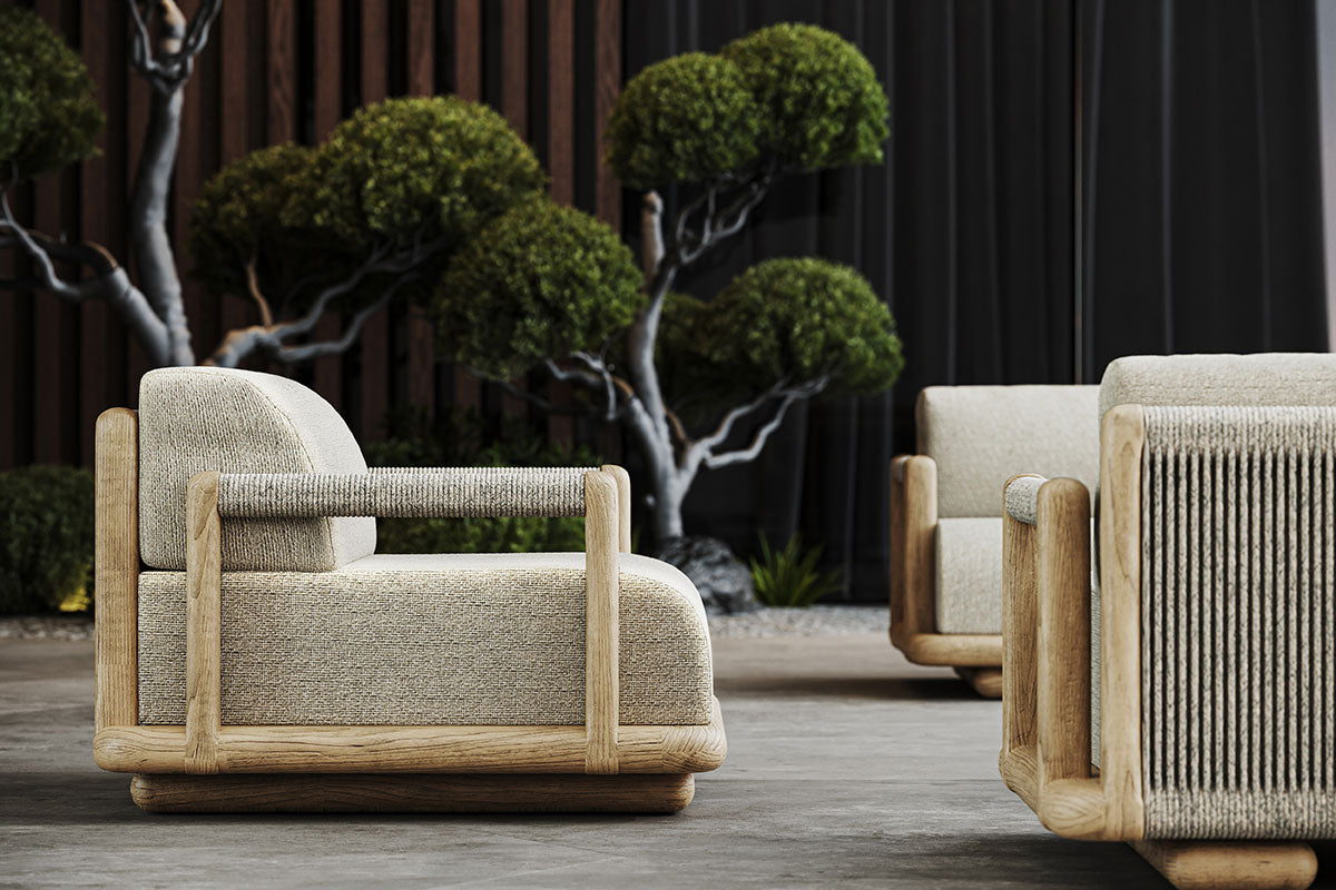 timeless materials. Designed for both outdoor settings, this modular lounge series prioritizes