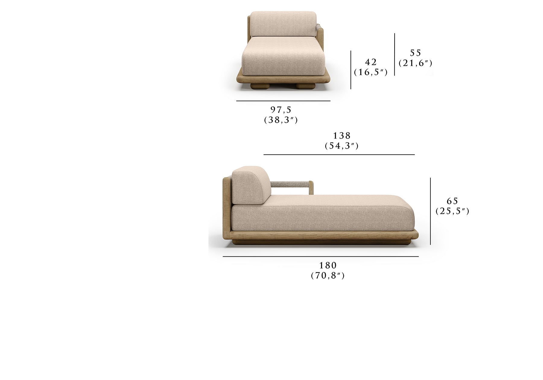 Daybed: 97,5 cm x 180 cm x 65 cm