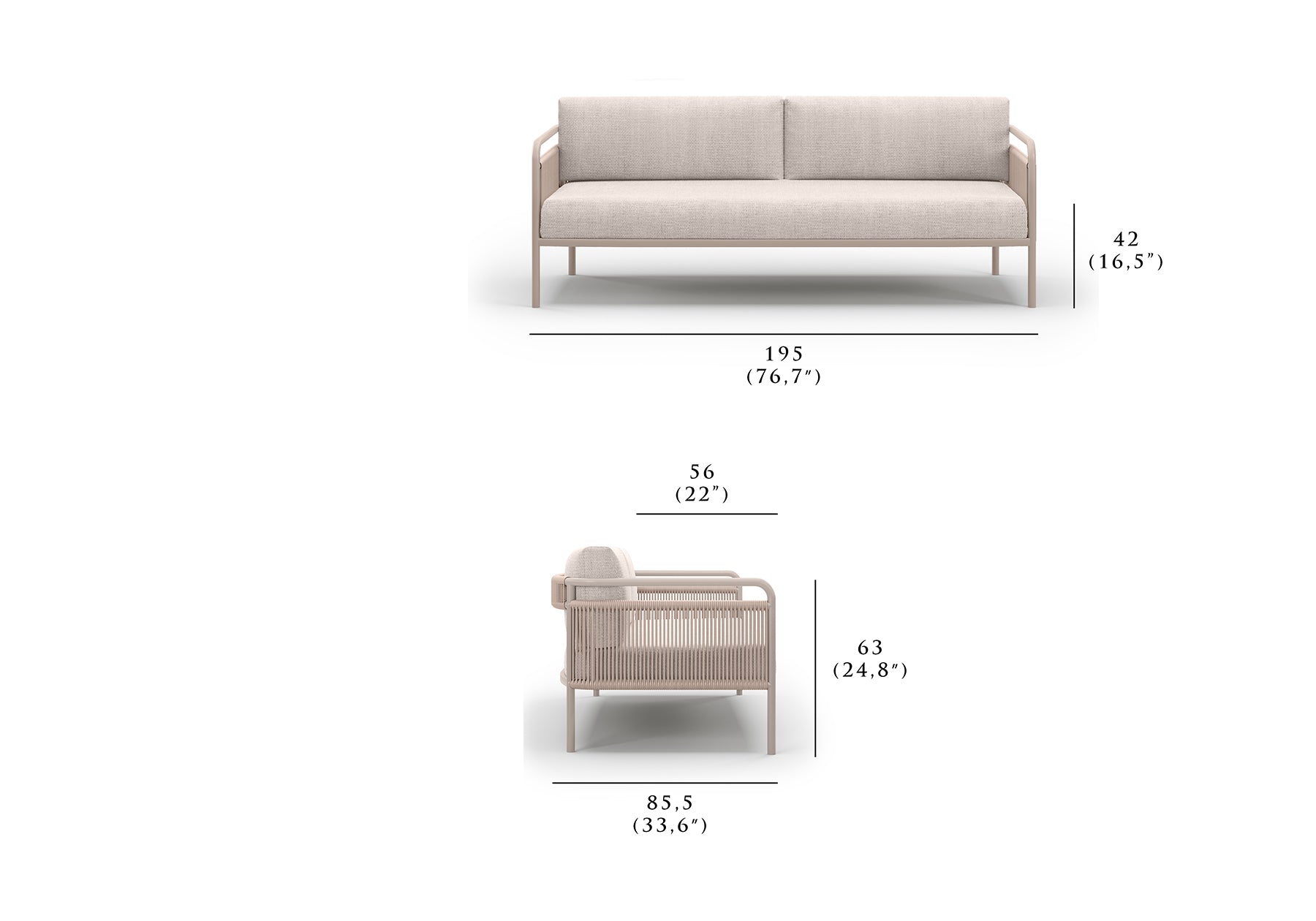 2 Seater Sofa: 195 cm x 85,5 cm x 63cm