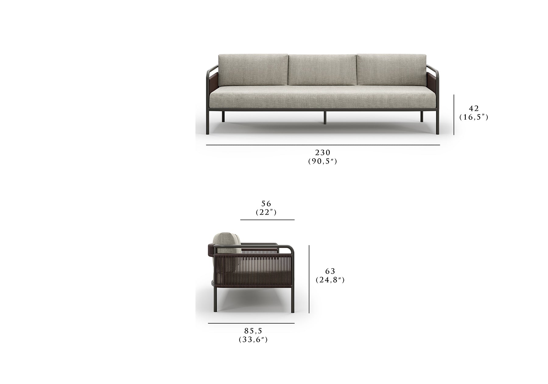 3 Seater Sofa: 230 cm x 85,5 cm x 63cm