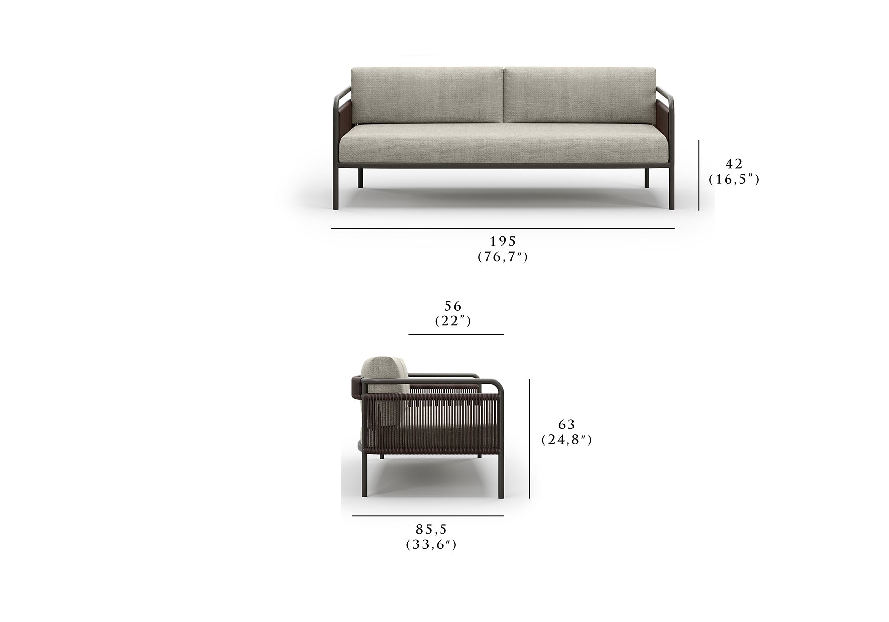 2 Seater Sofa: 195 cm x 85,5 cm x 63cm