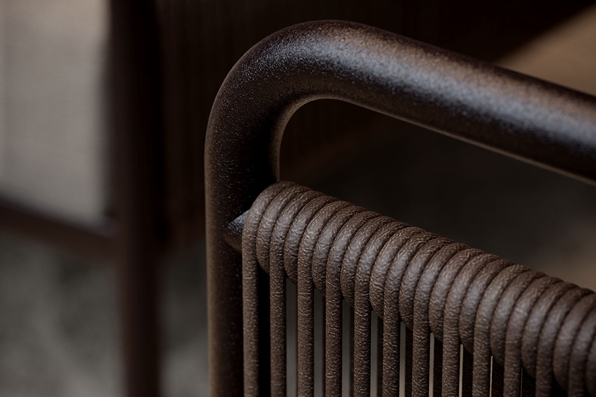 When designing Link Collection, Junpei & Iori Tamaki envisioned how multiple pieces placed together would create a link, and how that connection would evolve in various ways. To express Link Collection, Junpei & Iori Tamaki believed that a design with both simplicity and distinctive, memorable features was necessary. Bringing together the strength of wicker with the refined presence of leather. It is a design that emphasizes the contrast between the parts wrapped with leather look wicker and those without, set against a simple frame structure. This contrast creates a beauty in the balance of roughness and refinement, allowing both impressive and distinctive design to coexist.