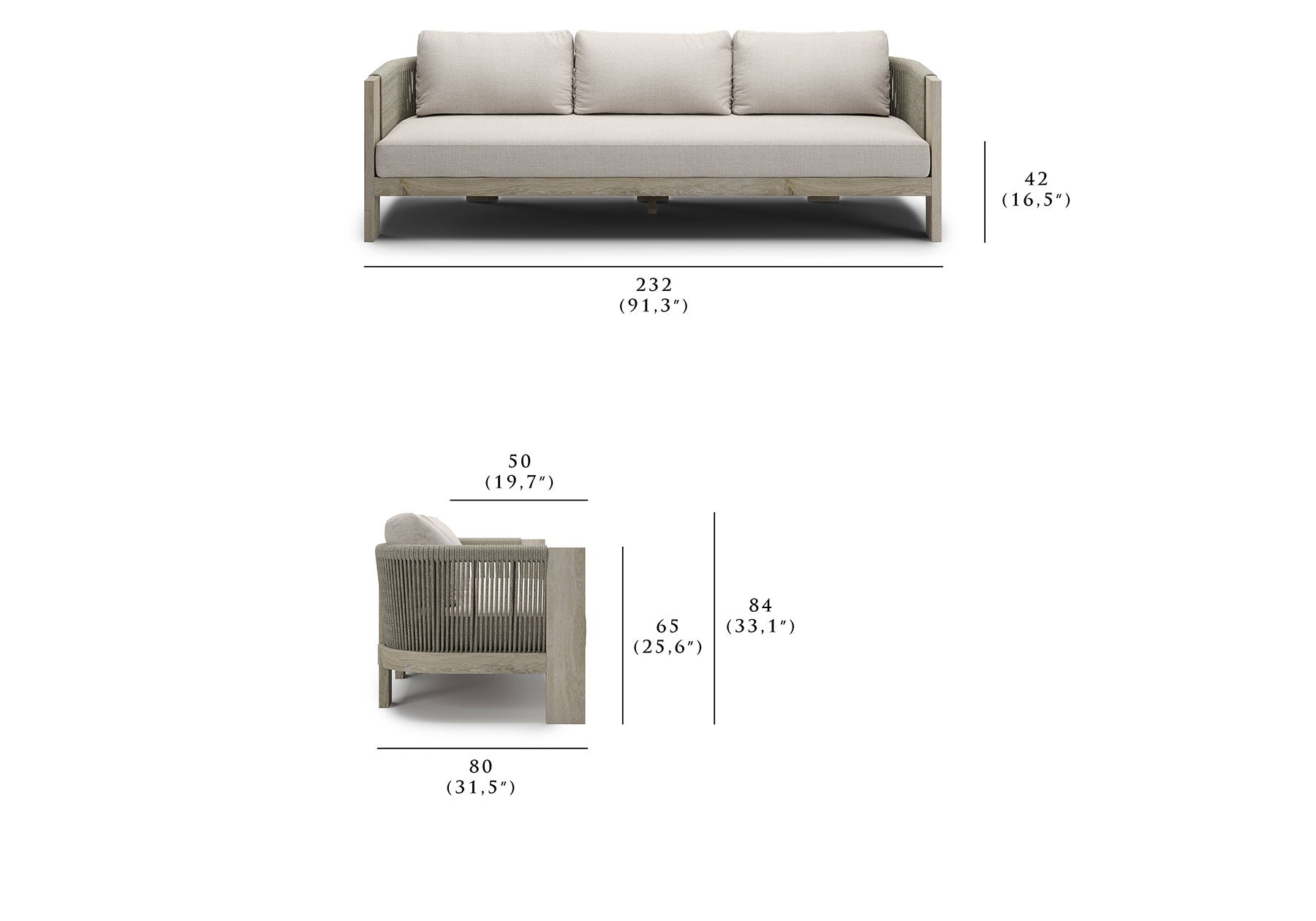Ralph-Ash Sofa: 232 cm x 80 cm x 65 cm