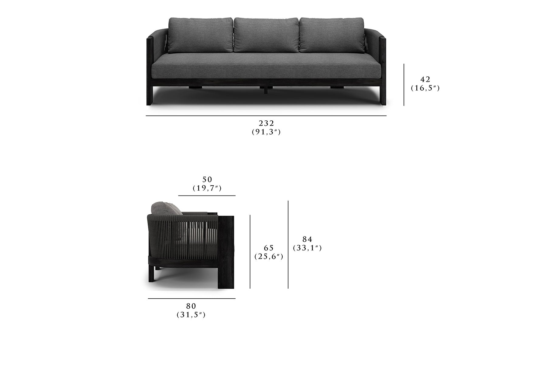 Ralph Sofa: 232 cm x 80 cm x 65 cm