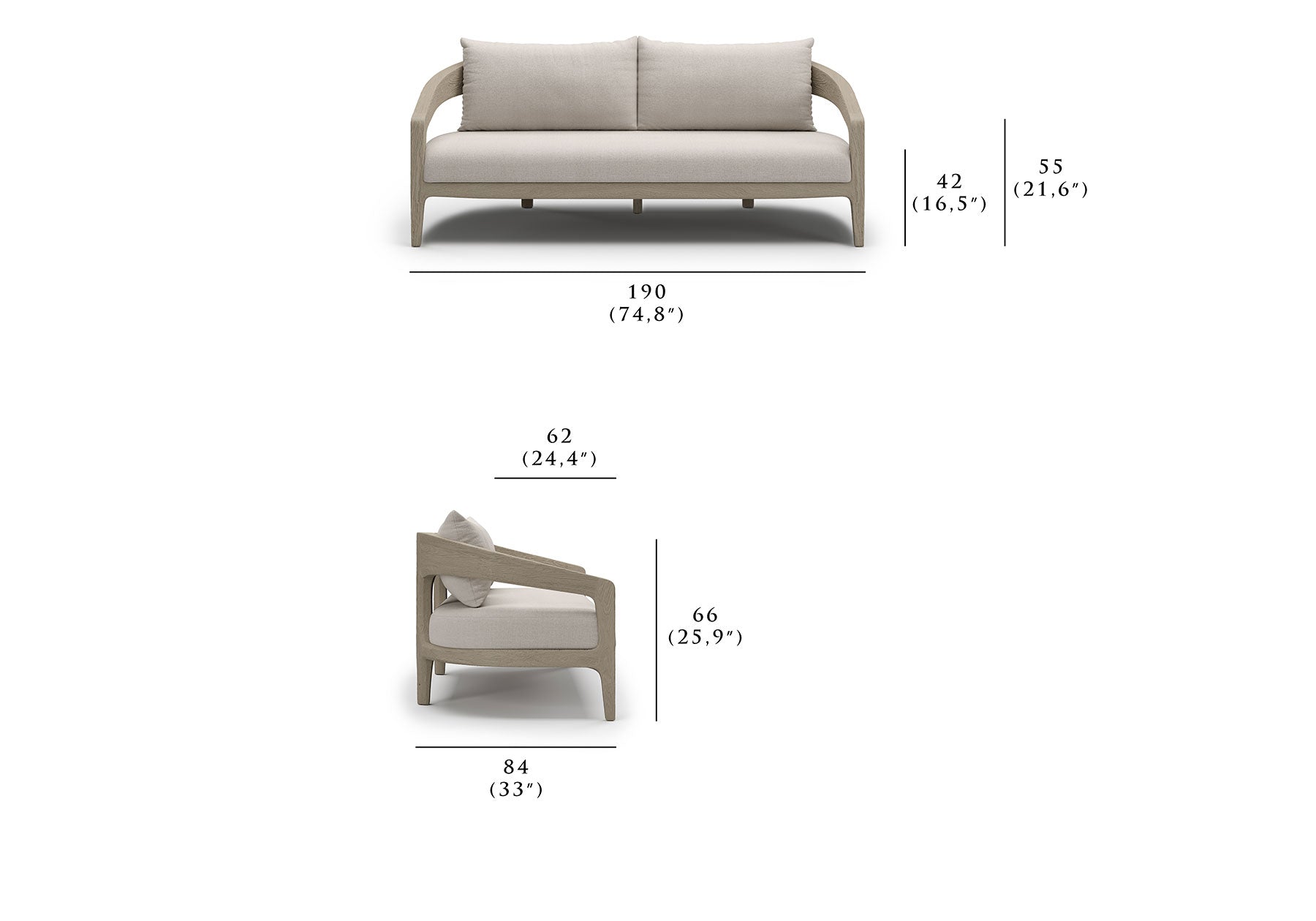 Whale 2 Seater Sofa: 180 cm x 81 cm x 78 cm