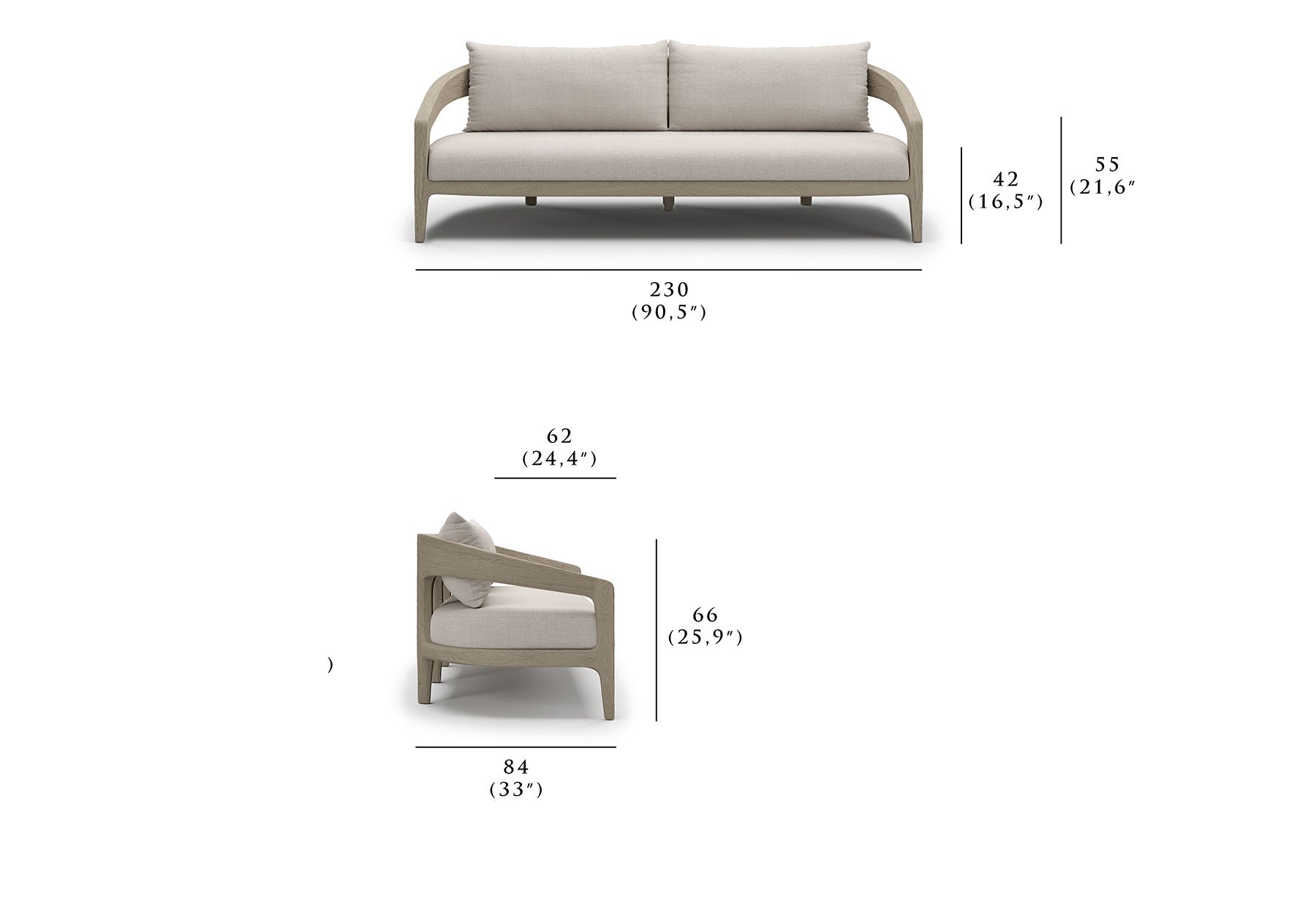 Whale 3 Seater Sofa: 230 cm x 84 cm x 66 cm